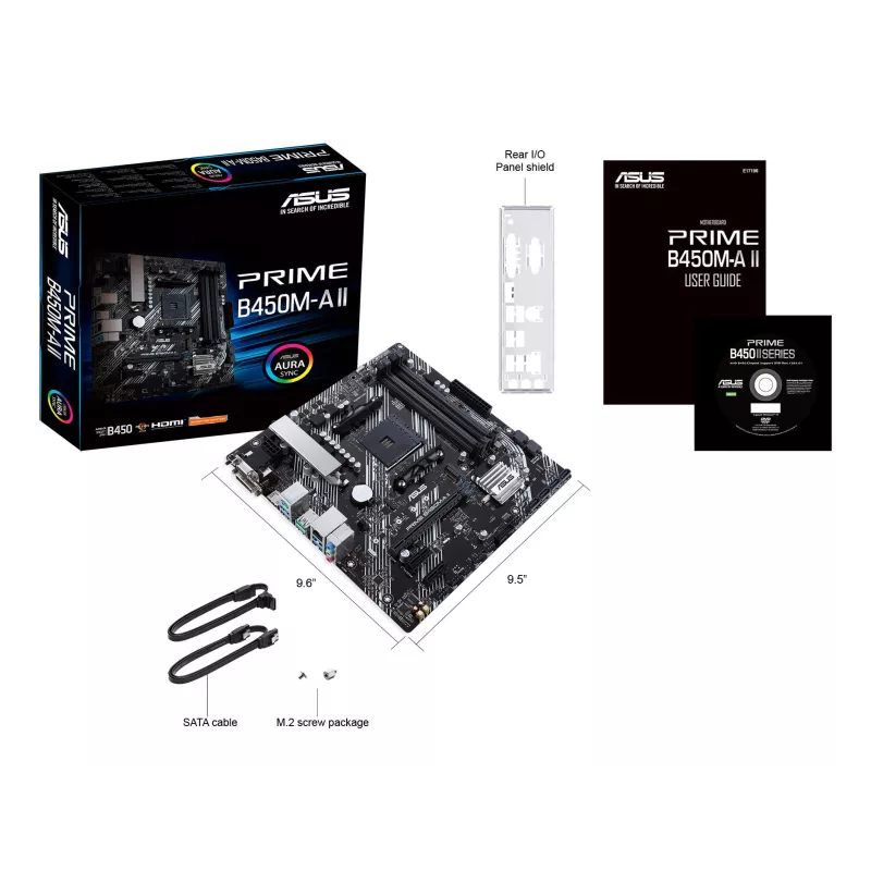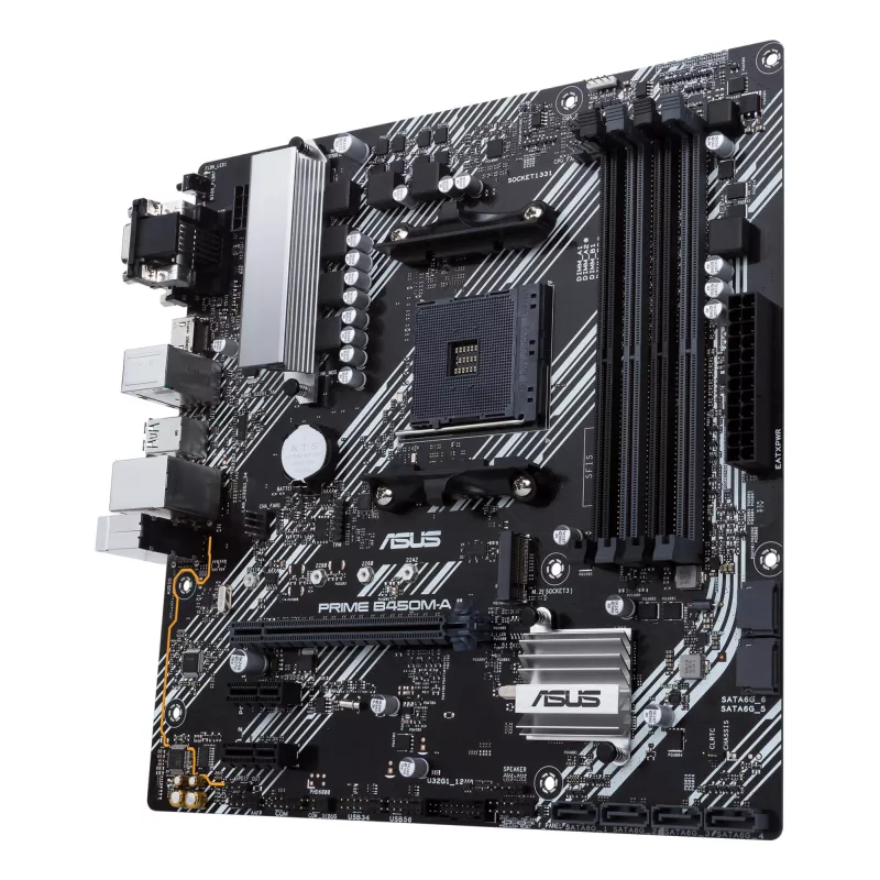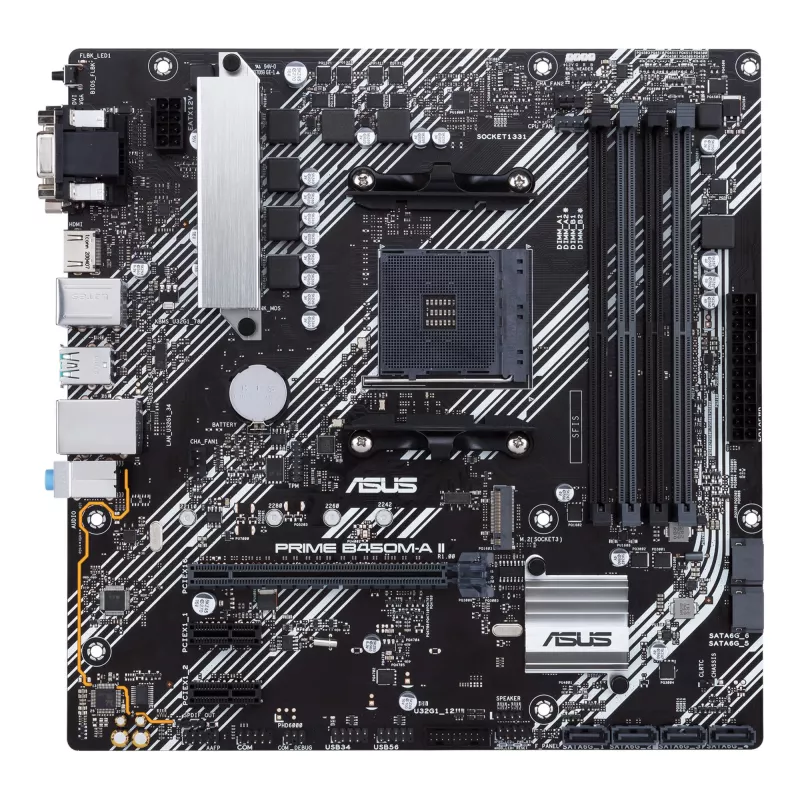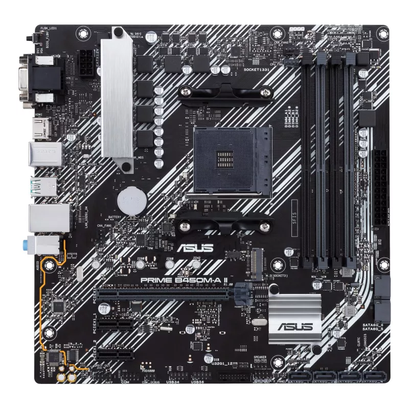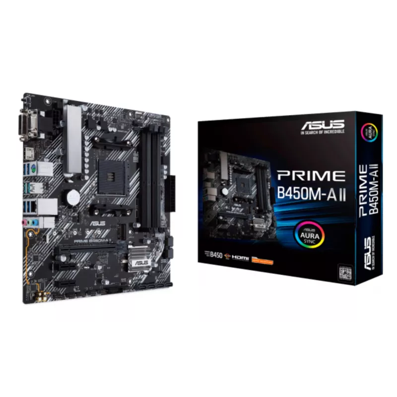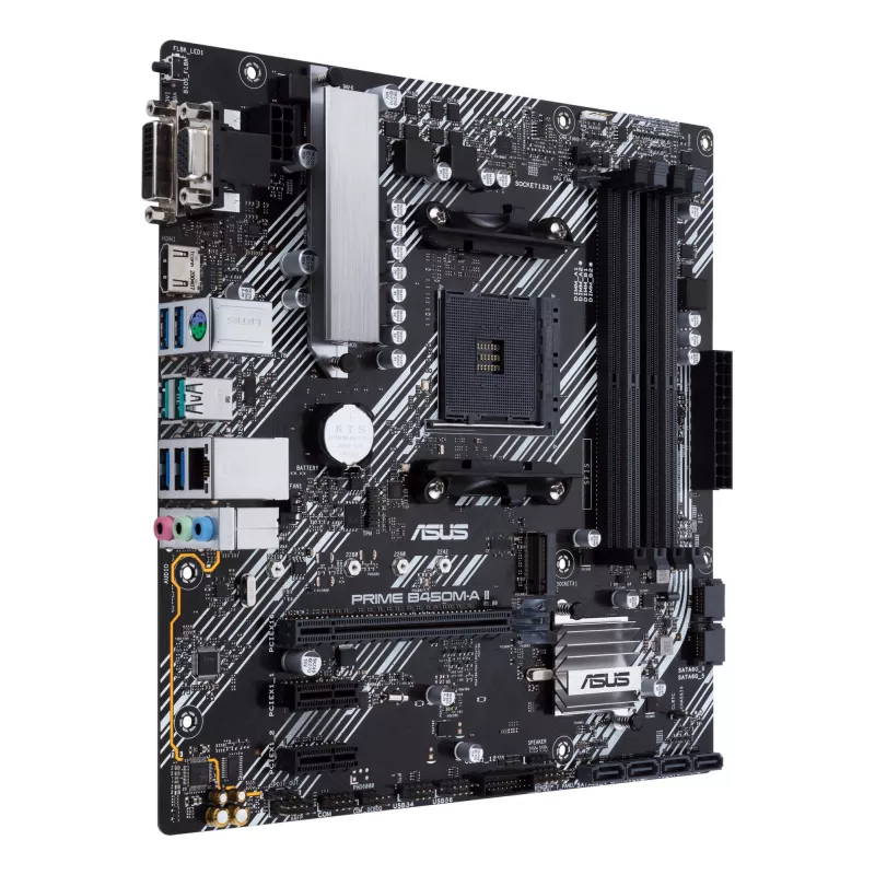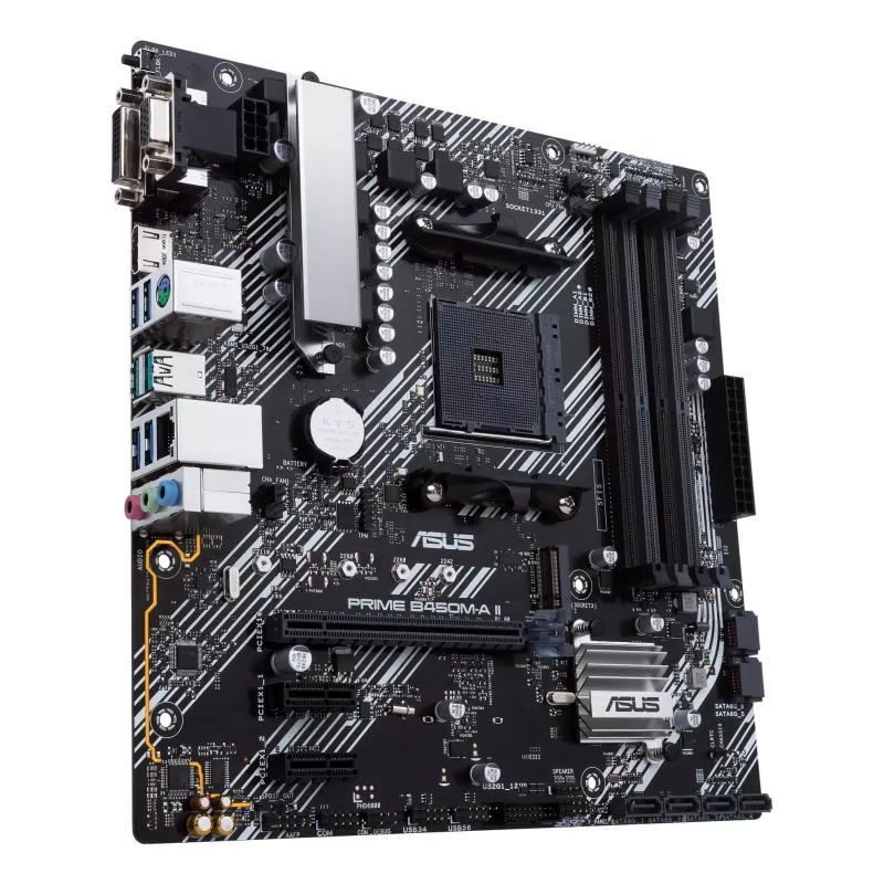 - ASUS PRIME B450M-A II. PROCESSOR MANUFACTURER: AMD, PROCESSOR SOCKET: SOCKET AM4, COMPATIBLE PROCESSOR SERIES: AMD RYZEN 3000 SERIES. SUPPORTED MEMORY TYPES: DDR4-SDRAM, MAXIMUM INTERNAL MEMORY: 128 GB, MEMORY SLOTS TYPE: DIMM. SUPPORTED STORAGE DRIVE INT
