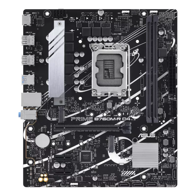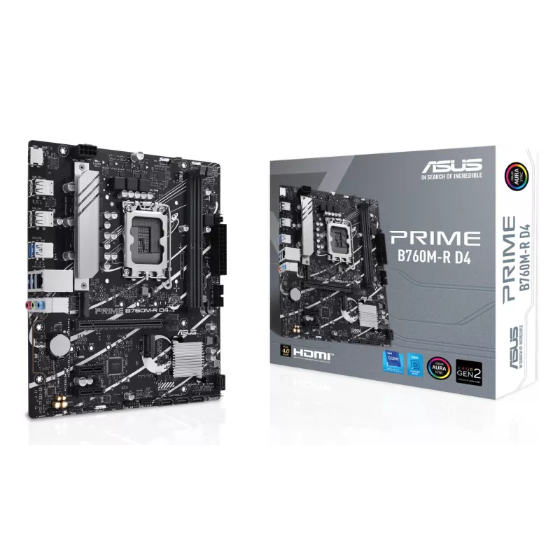 - ASUS PRIME B760M-R D4. PROCESSOR MANUFACTURER: INTEL, PROCESSOR SOCKET: LGA 1700, COMPATIBLE PROCESSOR SERIES: INTEL CORE I9 14TH GEN, INTEL CORE I3 12TH GEN, INTEL CORE I3 13TH GEN, INTEL CORE I5 12TH GEN,.... SUPPORTED MEMORY TYPES: DDR4-SDRAM, MAXIMUM