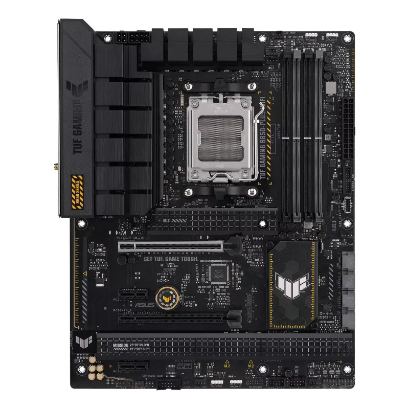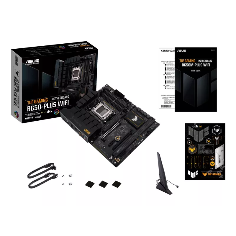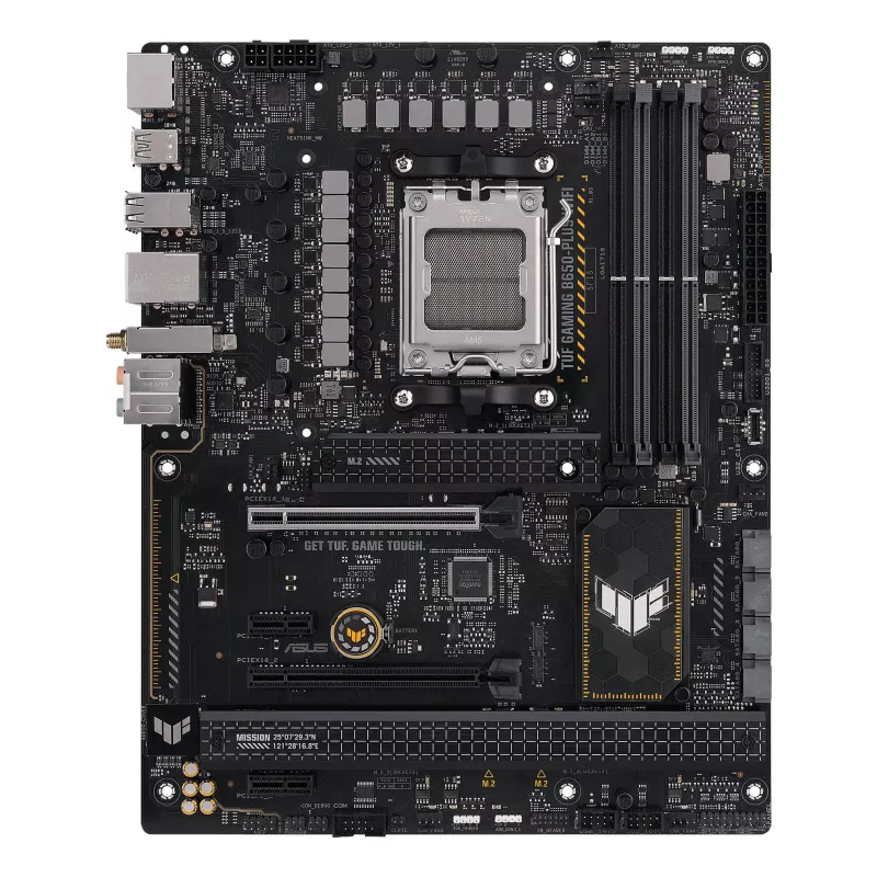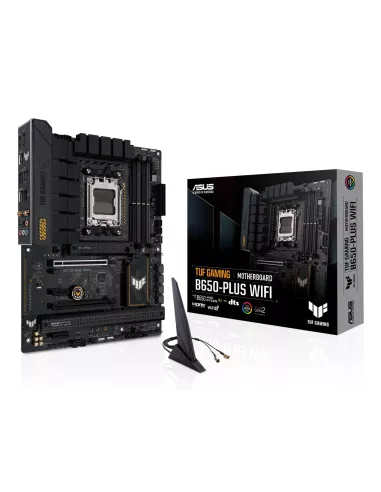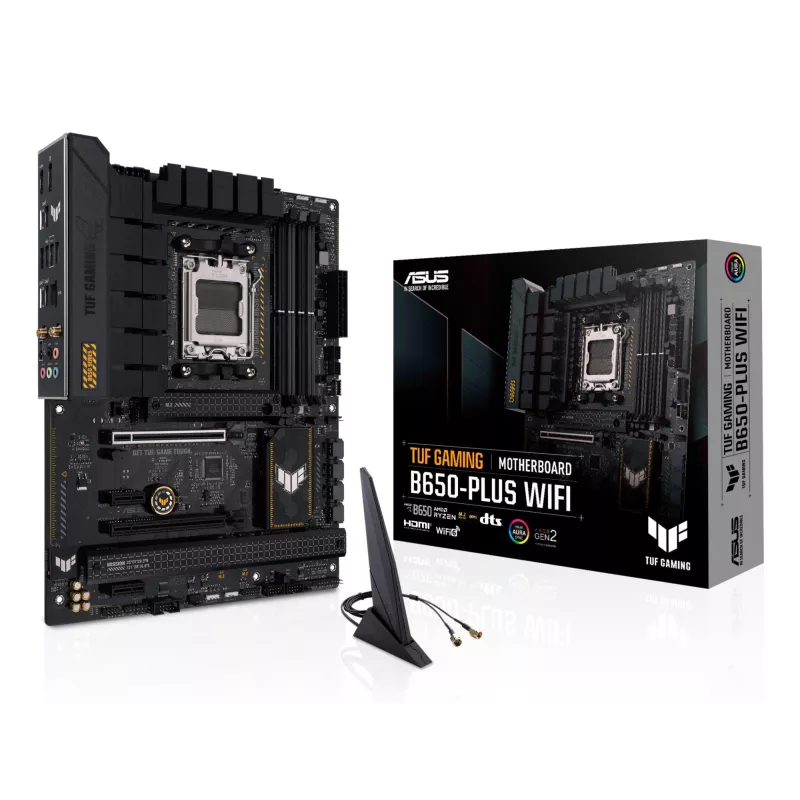 - ASUS TUF GAMING B650-PLUS WIFI. PROCESSOR MANUFACTURER: AMD, PROCESSOR SOCKET: SOCKET AM5, COMPATIBLE PROCESSOR SERIES: AMD RYZEN 7000 SERIES. SUPPORTED MEMORY TYPES: DDR5-SDRAM, MAXIMUM INTERNAL MEMORY: 128 GB, MEMORY SLOTS TYPE: DIMM. SUPPORTED STORAGE
