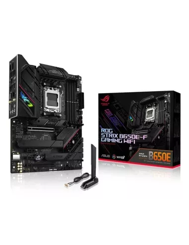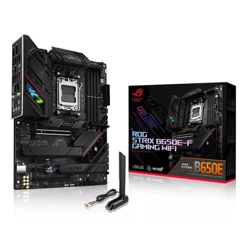 - ASUS ROG STRIX B650E-F GAMING WIFI. PROCESSOR MANUFACTURER: AMD, PROCESSOR SOCKET: SOCKET AM5, COMPATIBLE PROCESSOR SERIES: AMD RYZEN 7. SUPPORTED MEMORY TYPES: DDR5-SDRAM, MAXIMUM INTERNAL MEMORY: 128 GB, MEMORY SLOTS TYPE: DIMM. SUPPORTED STORAGE DRIVE