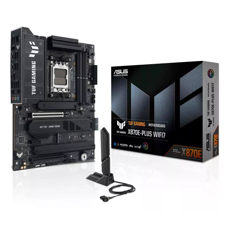 - ASUS TUF GAMING X870E-PLUS WIFI7. PROCESSOR MANUFACTURER: AMD, PROCESSOR SOCKET: SOCKET AM5, COMPATIBLE PROCESSOR SERIES: AMD RYZEN 7000 SERIES, AMD RYZEN 8000 SERIES, AMD RYZEN 9000 SERIES. SUPPORTED MEMORY TYPES: DDR5-SDRAM, MAXIMUM INTERNAL MEMORY: 256