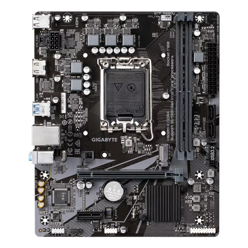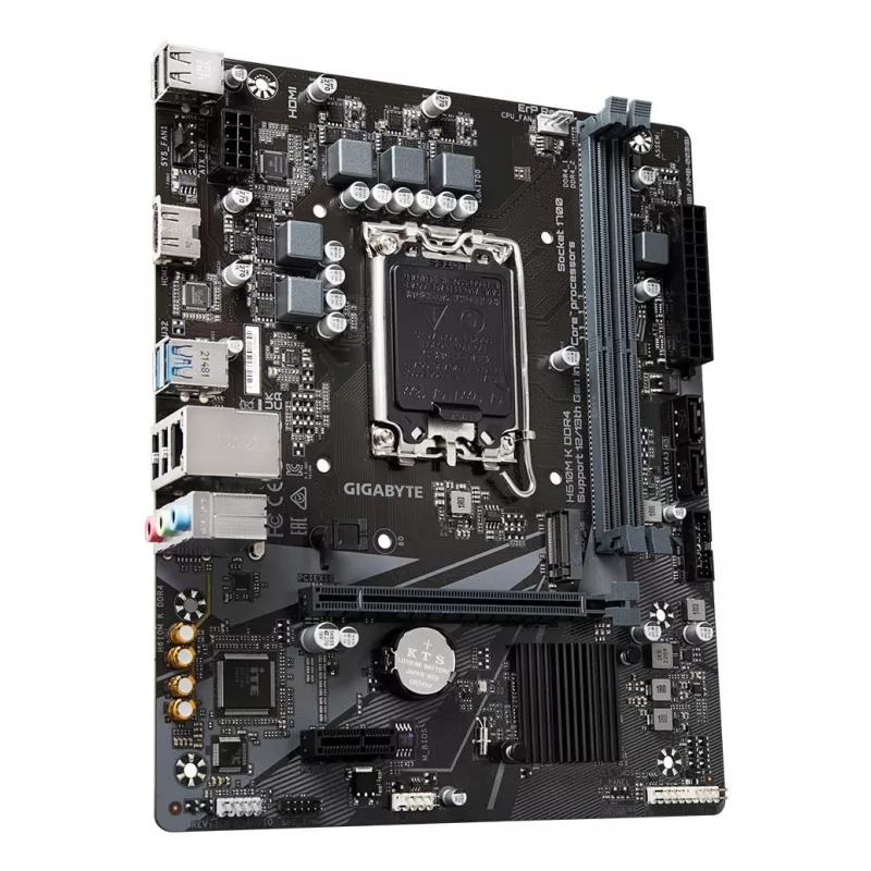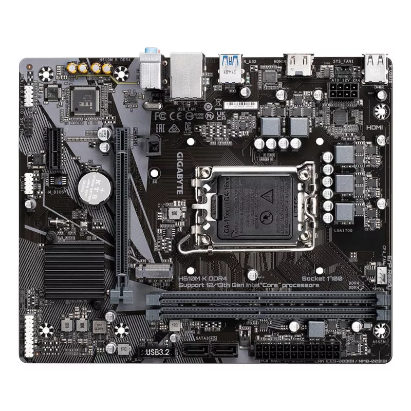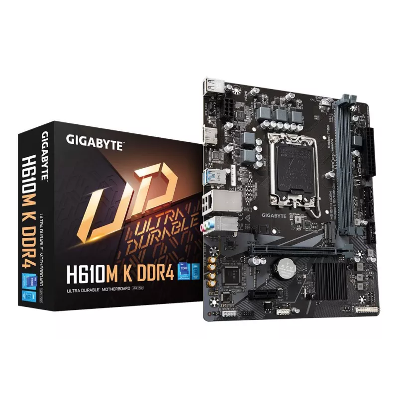 - GIGABYTE H610M K DDR4 MOTHERBOARD - SUPPORTS INTEL CORE 14TH GEN CPUS, 3+1+1 PHASES HYBRID POWER DESIGN, UP TO 3200MHZ DDR4, 1XPCIE 3.0 M.2, GBE LAN, USB 3.2 GEN 1. PROCESSOR MANUFACTURER: INTEL, PROCESSOR SOCKET: LGA 1700, COMPATIBLE PROCESSOR SERIES: IN