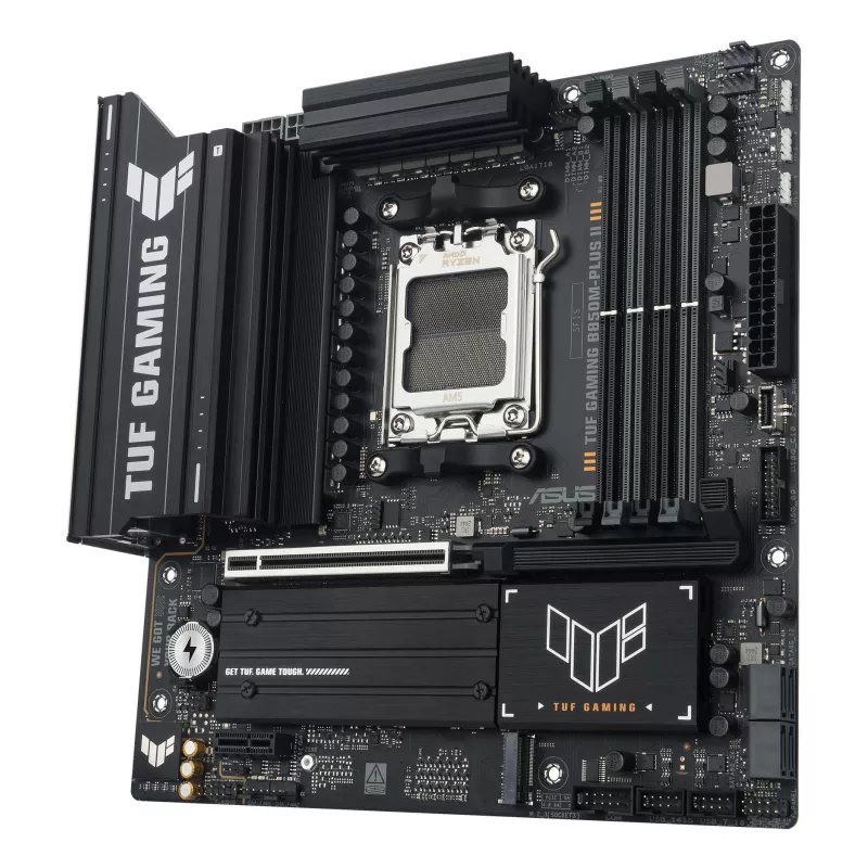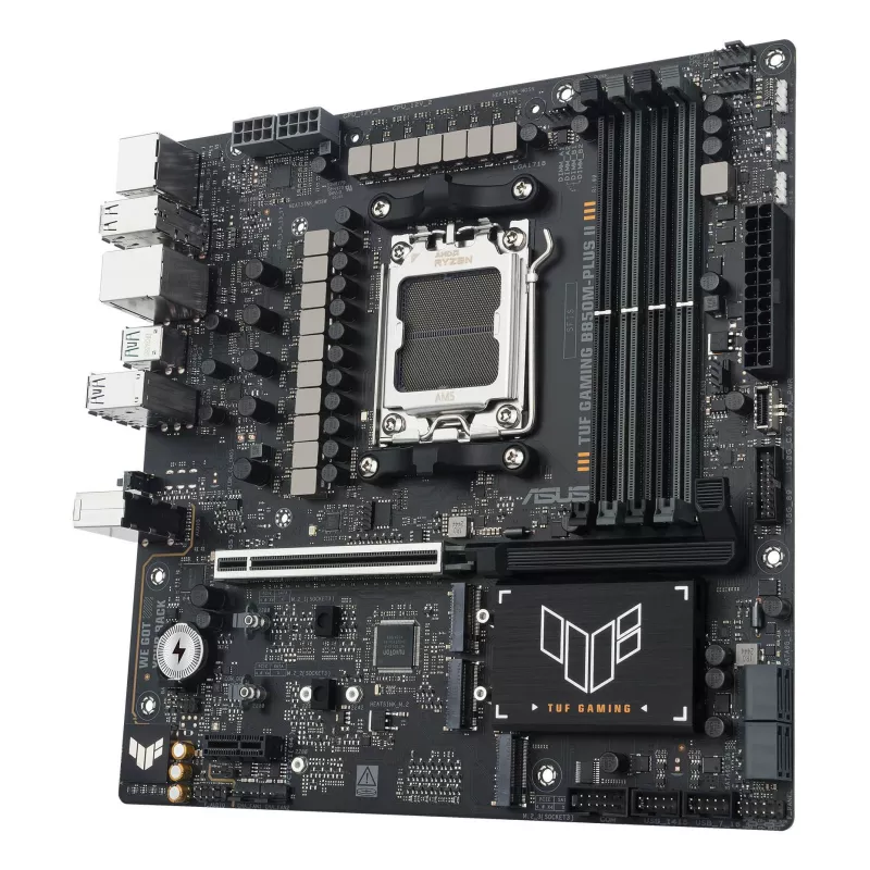 ASUS TUF GAMING B850M-PLUS II. PROCESSOR MANUFACTURER: AMD, PROCESSOR SOCKET: SOCKET AM5, COMPATIBLE PROCESSOR SERIES: AMD RYZEN 7000 SERIES, AMD RYZEN 8000 SERIES, AMD RYZEN 9000 SERIES. SUPPORTED MEMORY TYPES: DDR5-SDRAM, MAXIMUM INTERNAL MEMORY: 256 GB