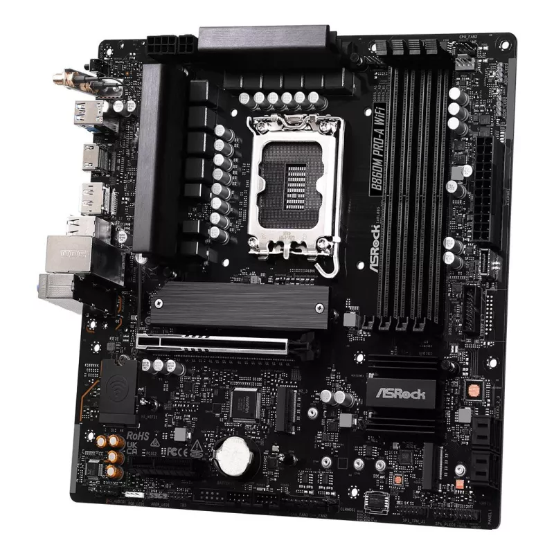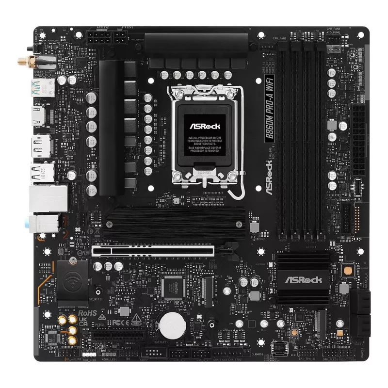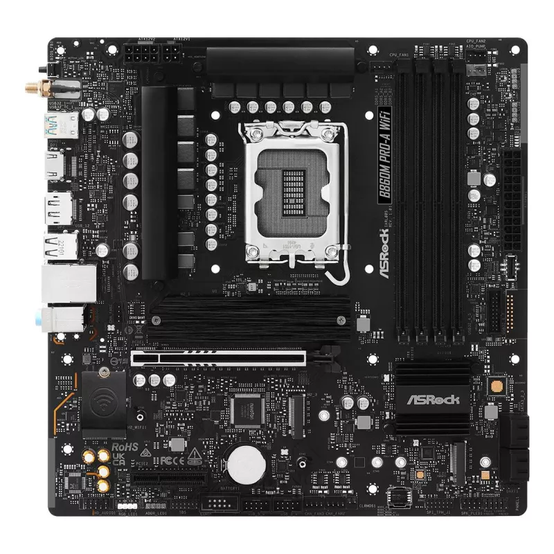 - ASROCK B860M PRO-A WIFI. PROCESSOR MANUFACTURER: INTEL, PROCESSOR SOCKET: LGA 1851 (SOCKET V1). SUPPORTED MEMORY TYPES: DDR5-SDRAM, MAXIMUM INTERNAL MEMORY: 256 GB, MEMORY SLOTS TYPE: DIMM. SUPPORTED STORAGE DRIVE INTERFACES: M.2, SATA III, SUPPORTED STOR