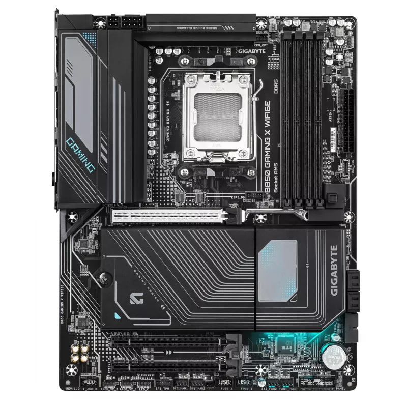 - GIGABYTE B850 GAMING X WIFI6E MOTHERBOARD - AMD RYZEN 9000 SERIES CPUS, 12+2+2 PHASES DIGITAL VRM, UP TO 8200MHZ DDR5 (OC), 1XPCIE 5.0 + 2XPCIE 4.0 M.2, 2.5LAN, WIFI 6E, USB 3.2 GEN 2X2. PROCESSOR MANUFACTURER: AMD, PROCESSOR SOCKET: SOCKET AM5, COMPATIBL