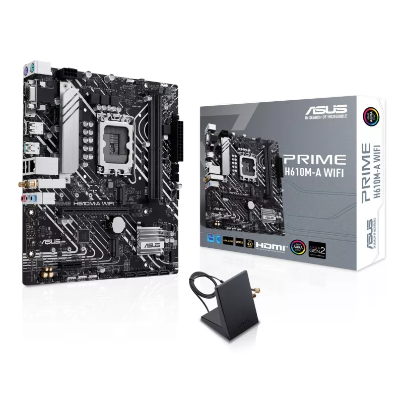 - ASUS PRIME H610M-A WIFI. PROCESSOR MANUFACTURER: INTEL, PROCESSOR SOCKET: LGA 1700, COMPATIBLE PROCESSOR SERIES: INTEL® CELERON® , INTEL® PENTIUM® GOLD, INTEL® CORE&TRADE I3, INTEL® CORE&TRADE I5, INTEL® CORE&TRADE .... SUPPORTED MEMO