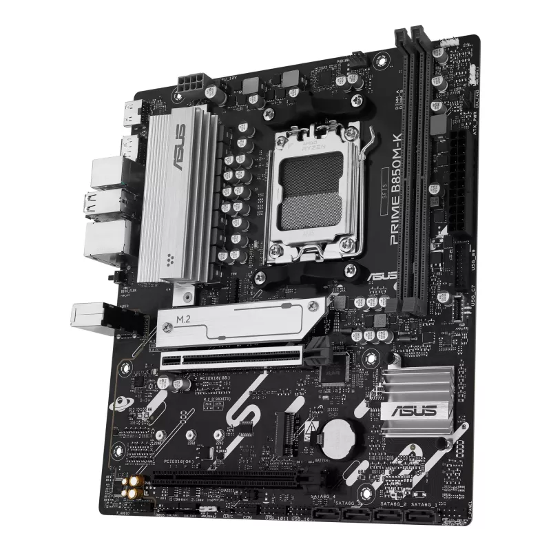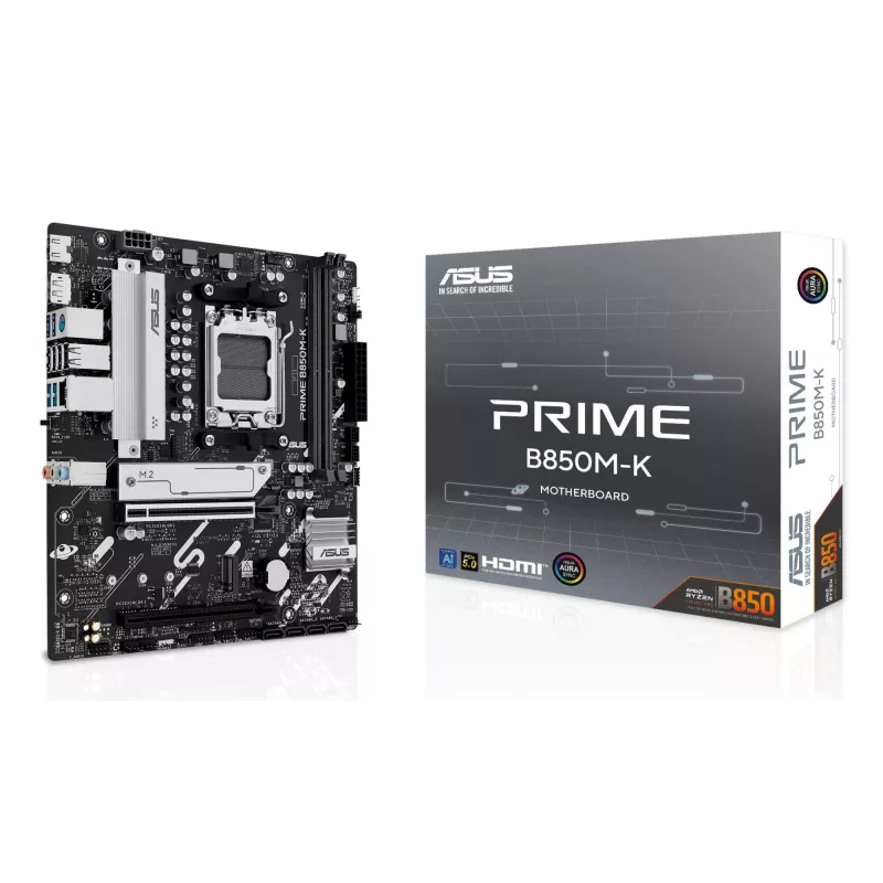 - ASUS PRIME B850M-K. PROCESSOR MANUFACTURER: AMD, PROCESSOR SOCKET: SOCKET AM5, COMPATIBLE PROCESSOR SERIES: AMD RYZEN 7000 SERIES, AMD RYZEN 8000 SERIES, AMD RYZEN 9000 SERIES. SUPPORTED MEMORY TYPES: DDR5-SDRAM, MAXIMUM INTERNAL MEMORY: 128 GB, MEMORY SL