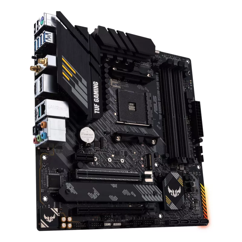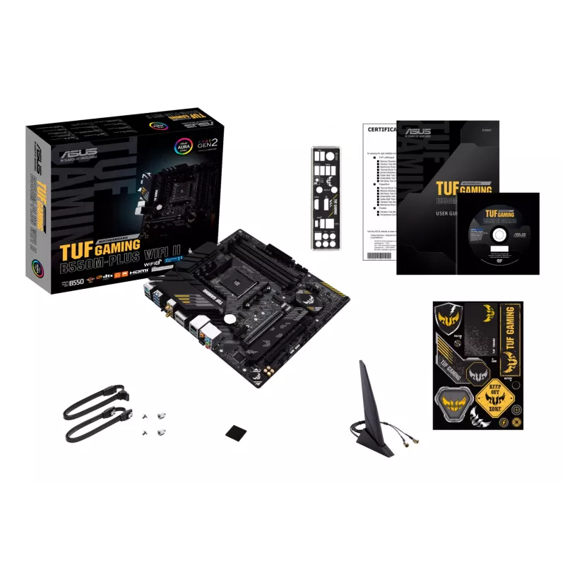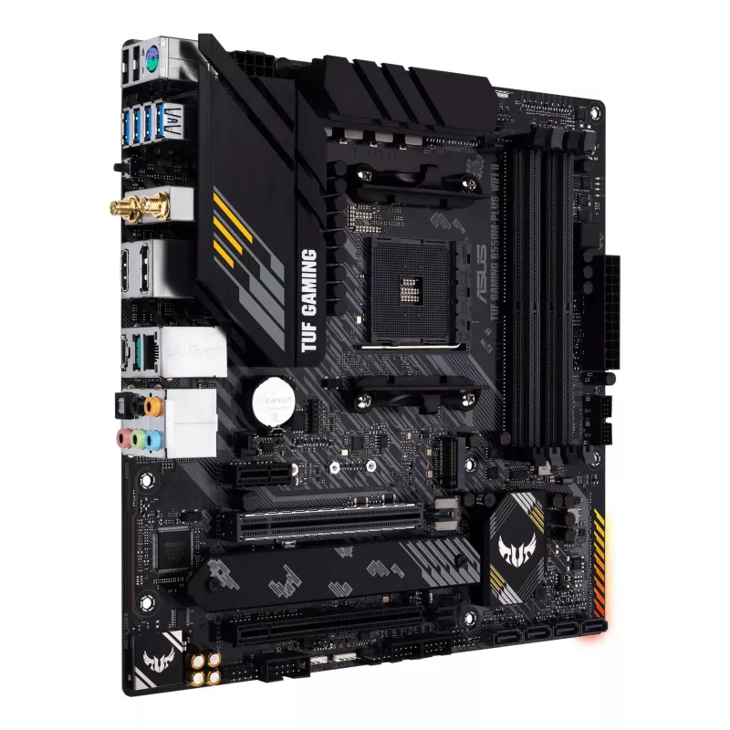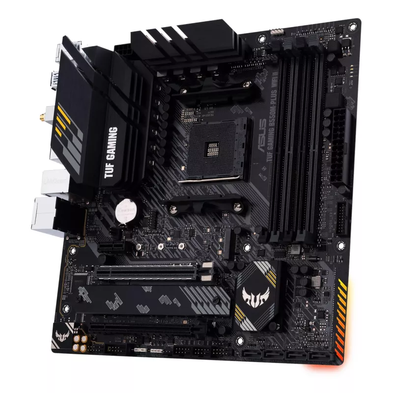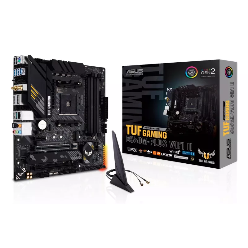 - ASUS TUF GAMING B550M-PLUS WIFI II. PROCESSOR MANUFACTURER: AMD, PROCESSOR SOCKET: SOCKET AM4, COMPATIBLE PROCESSOR SERIES: AMD RYZEN 3000 SERIES, AMD RYZEN 5000 SERIES. SUPPORTED MEMORY TYPES: DDR4-SDRAM, MAXIMUM INTERNAL MEMORY: 128 GB, MEMORY SLOTS TYP