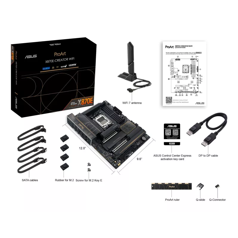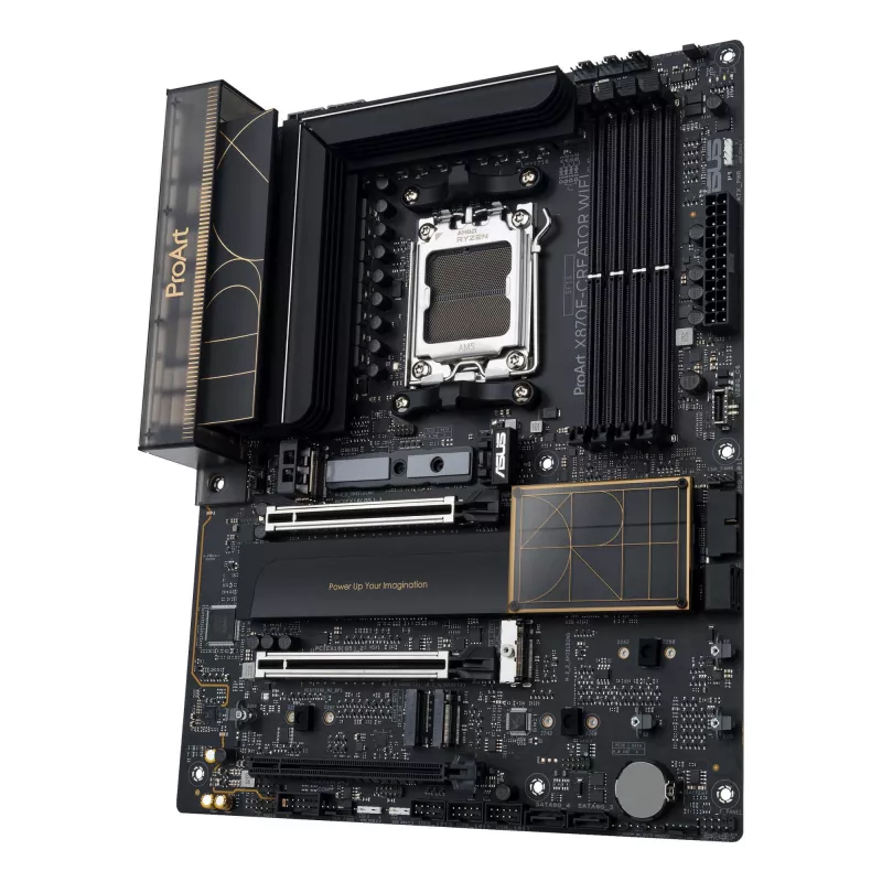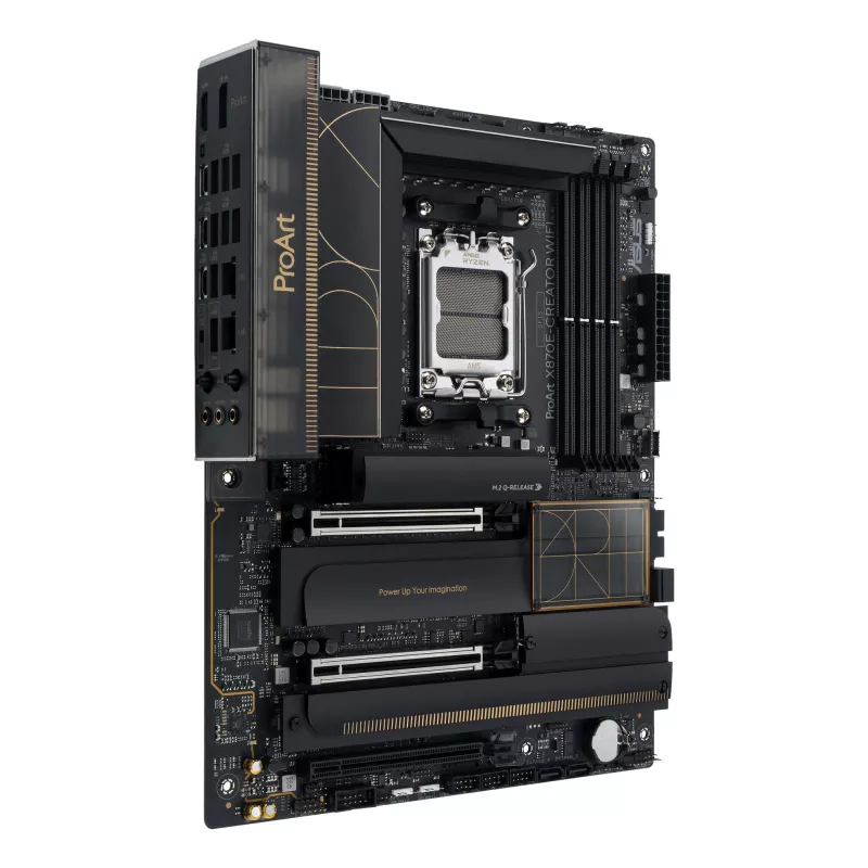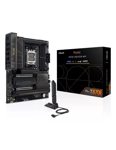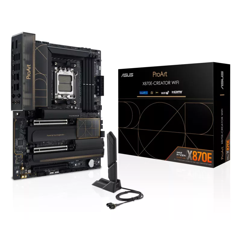 ASUS PROART X870E-CREATOR WIFI. PROCESSOR MANUFACTURER: AMD, PROCESSOR SOCKET: SOCKET AM5, SUPPORTED PROCESSOR SOCKETS: SOCKET AM5. SUPPORTED MEMORY TYPES: DDR5-SDRAM, MAXIMUM INTERNAL MEMORY: 192 GB, MEMORY SLOTS TYPE: DIMM. SUPPORTED STORAGE DRIVE INTER