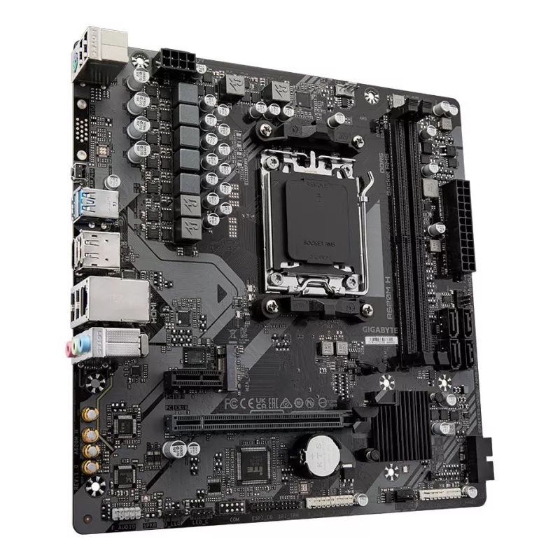 AMD A620 , micro ATX , Audio 7.1 channels , CPU AMD , Socket Socket AM5 , Series AMD Ryzen 7000 Series , Supported memory types DDR5-SDRAM , 2xNumber of memory slots , Memory slots type DIMM , Supported storage drive interfaces M.2,SATA III , 4096 x 2160 pixels , 4xUSB 2.0 ports quantity , 2xUSB 3.2 Gen 1 (3.1 Gen 1) Type-A ports quantity , 1xEthernet LAN (RJ-45) ports , 1xHDMI ports quantity