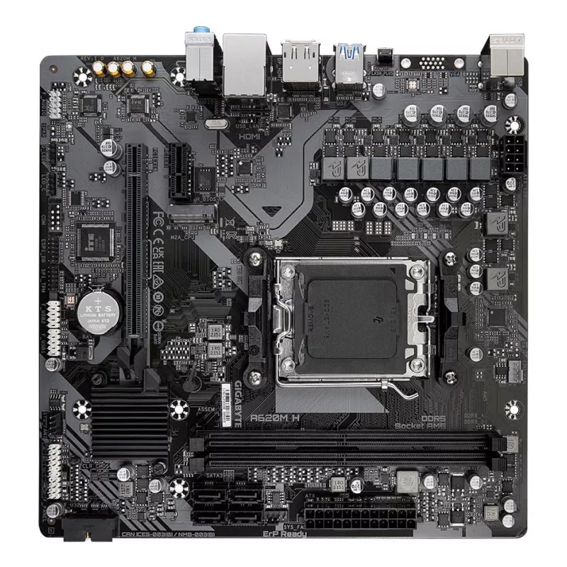 - GIGABYTE A620M H MOTHERBOARD - SUPPORTS AMD RYZEN 8000 CPUS, 5+2+2 PHASES DIGITAL VRM, UP TO 7200MHZ DDR5 (OC), 1XPCIE 4.0 M.2, GBE LAN, USB 3.2 GEN 1. PROCESSOR MANUFACTURER: AMD, PROCESSOR SOCKET: SOCKET AM5, COMPATIBLE PROCESSOR SERIES: AMD RYZEN 7000