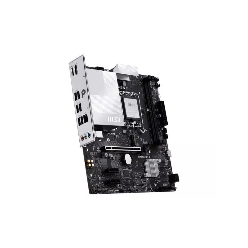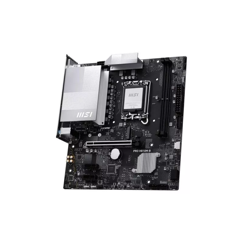 - MSI PRO H810M-B. PROCESSOR MANUFACTURER: INTEL, PROCESSOR SOCKET: LGA 1851 (SOCKET V1), COMPATIBLE PROCESSOR SERIES: INTEL CORE ULTRA (SERIES 2). SUPPORTED MEMORY TYPES: DDR5-SDRAM, MAXIMUM INTERNAL MEMORY: 128 GB, ECC OMPATIBILITY: NON-ECC. SUPPORTED STO