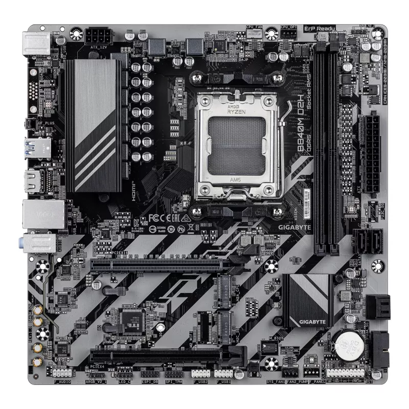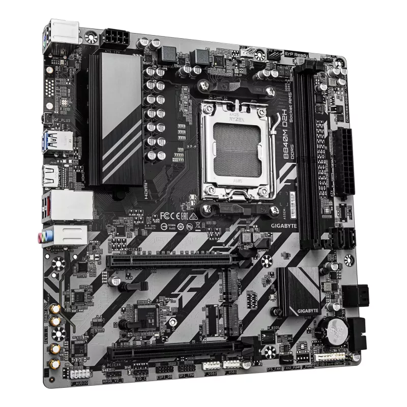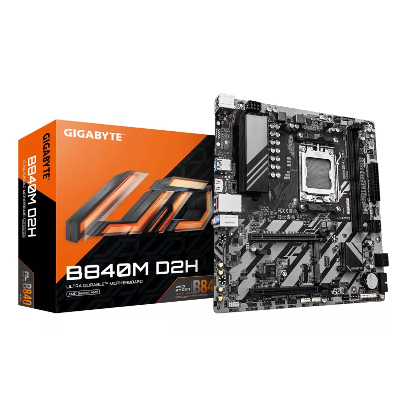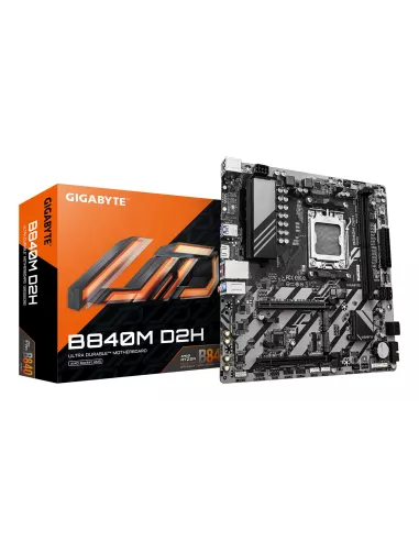 - GIGABYTE B840M D2H MOTHERBOARD - AMD RYZEN 9000 CPUS, 5+2+2 PHASES VRM, UP TO 7600MHZ DDR5, 1XPCIE 4.0 + 1XPCIE 3.0 M.2, 2.5GBE LAN, USB 3.2 GEN 1. PROCESSOR MANUFACTURER: AMD, PROCESSOR SOCKET: SOCKET AM5, COMPATIBLE PROCESSOR SERIES: AMD RYZEN 7000 SERI