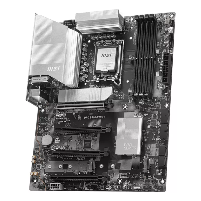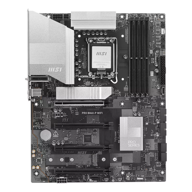 - MSI PRO B860-P WIFI. PROCESSOR MANUFACTURER: INTEL, PROCESSOR SOCKET: LGA 1851 (SOCKET V1), COMPATIBLE PROCESSOR SERIES: INTEL CORE ULTRA (SERIES 2). SUPPORTED MEMORY TYPES: DDR5-SDRAM, MAXIMUM INTERNAL MEMORY: 256 GB, MEMORY SLOTS TYPE: DIMM. SUPPORTED S