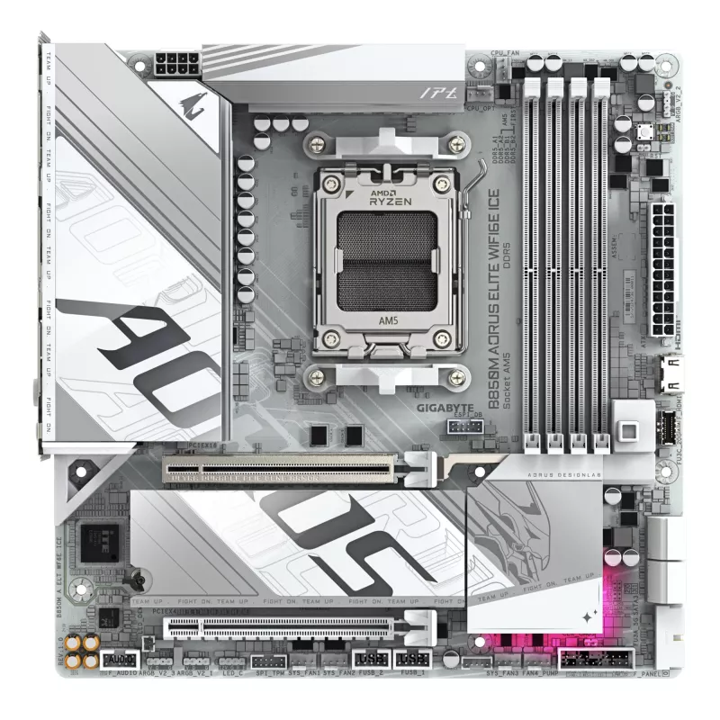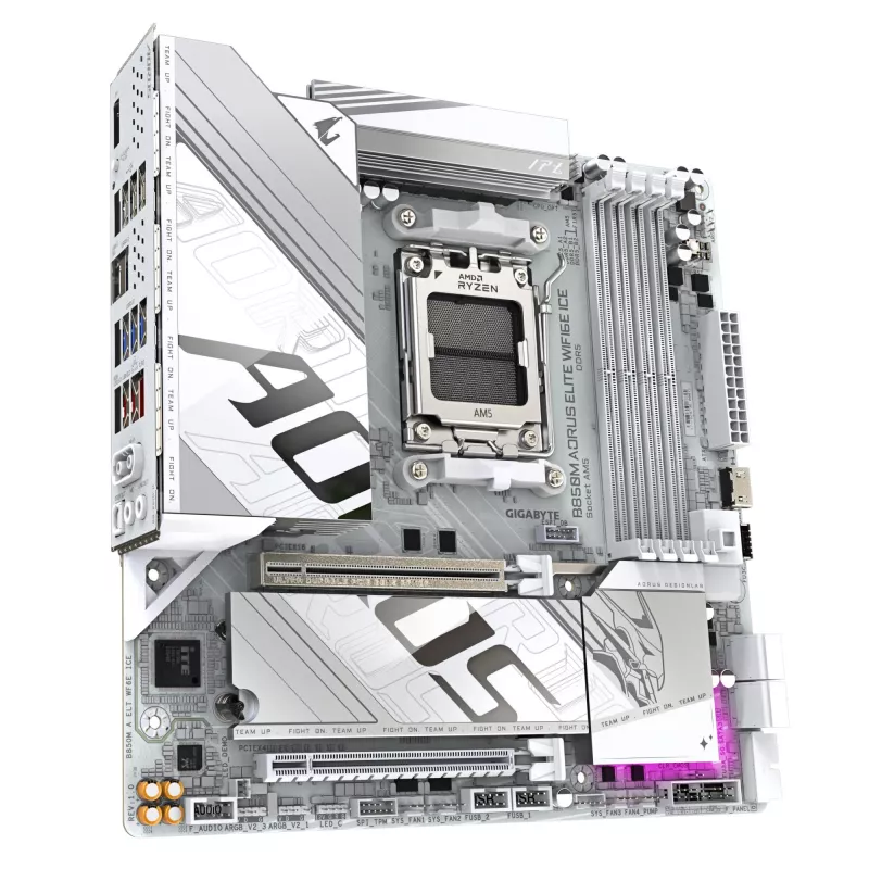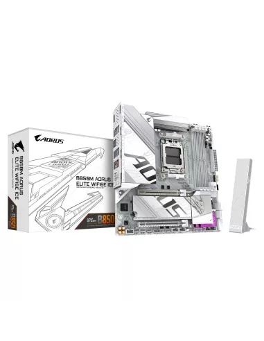 GIGABYTE B850M AORUS ELITE WIFI6E ICE MOTHERBOARD- AMD RYZEN 9000 SERIES CPUS, 12+2+1 PHASES DIGITAL VRM, UP TO 8200MHZ DDR5 (OC), 1XPCIE 5.0 + 1XPCIE 4.0 M.2, 2.5LAN, WIFI 7, USB 3.2 GEN 2. PROCESSOR MANUFACTURER: AMD, PROCESSOR SOCKET: SOCKET AM5, COMPA