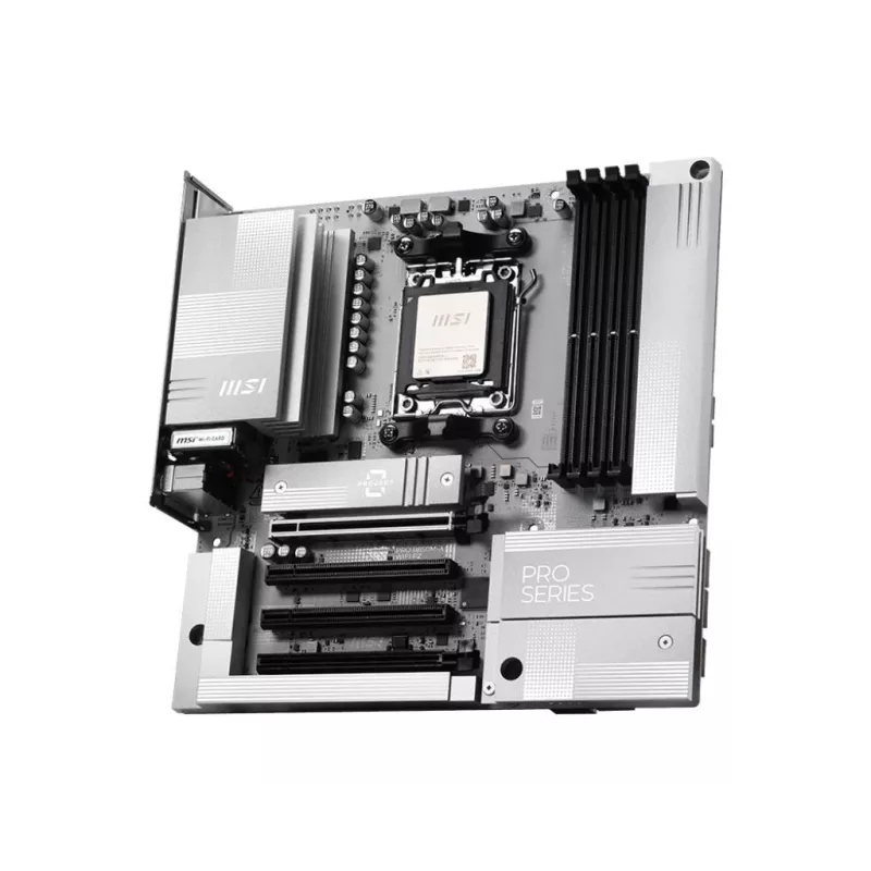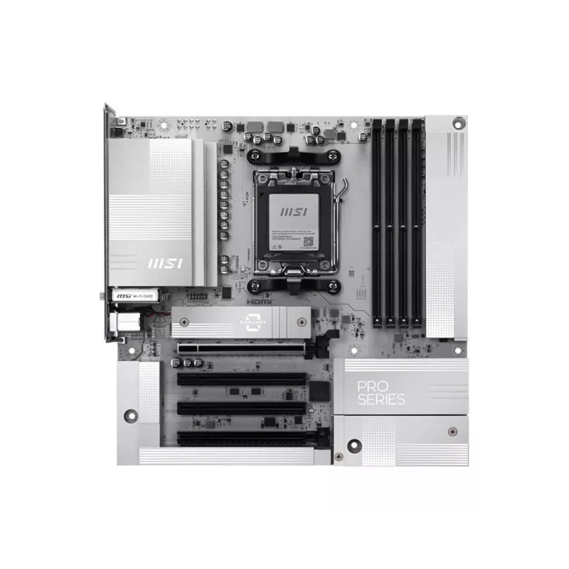 MSI AM5 PRO B850M-A WIFI PZ M-ATX. PROCESSOR MANUFACTURER: AMD, PROCESSOR SOCKET: SOCKET AM5, COMPATIBLE PROCESSOR SERIES: AMD RYZEN 7000 SERIES, AMD RYZEN 8000 SERIES, AMD RYZEN 9000 SERIES. SUPPORTED MEMORY TYPES: DDR5-SDRAM, MAXIMUM INTERNAL MEMORY: 25