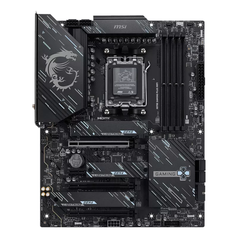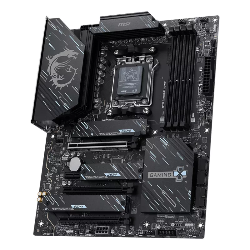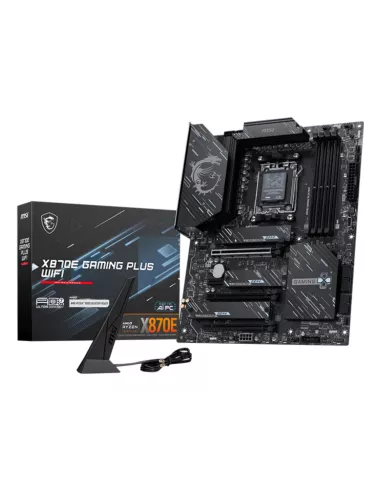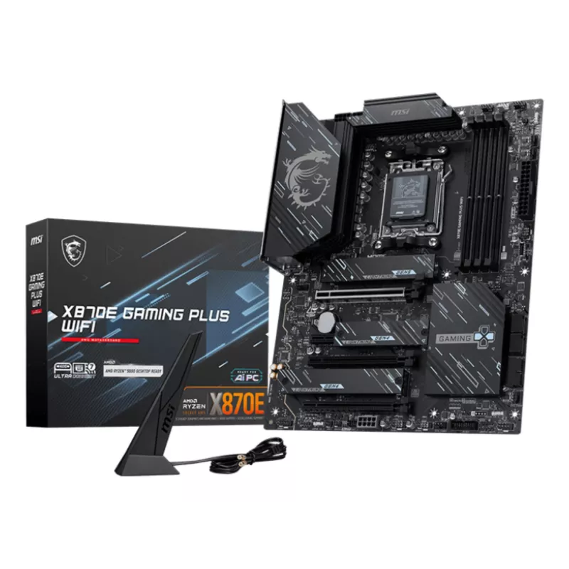 MSI X870E GAMING PLUS WIFI. PROCESSOR MANUFACTURER: AMD, PROCESSOR SOCKET: SOCKET AM5, COMPATIBLE PROCESSOR SERIES: AMD RYZEN 7000 SERIES, AMD RYZEN 8000 SERIES, AMD RYZEN 9000 SERIES. SUPPORTED MEMORY TYPES: DDR5-SDRAM, MAXIMUM INTERNAL MEMORY: 256 GB, M