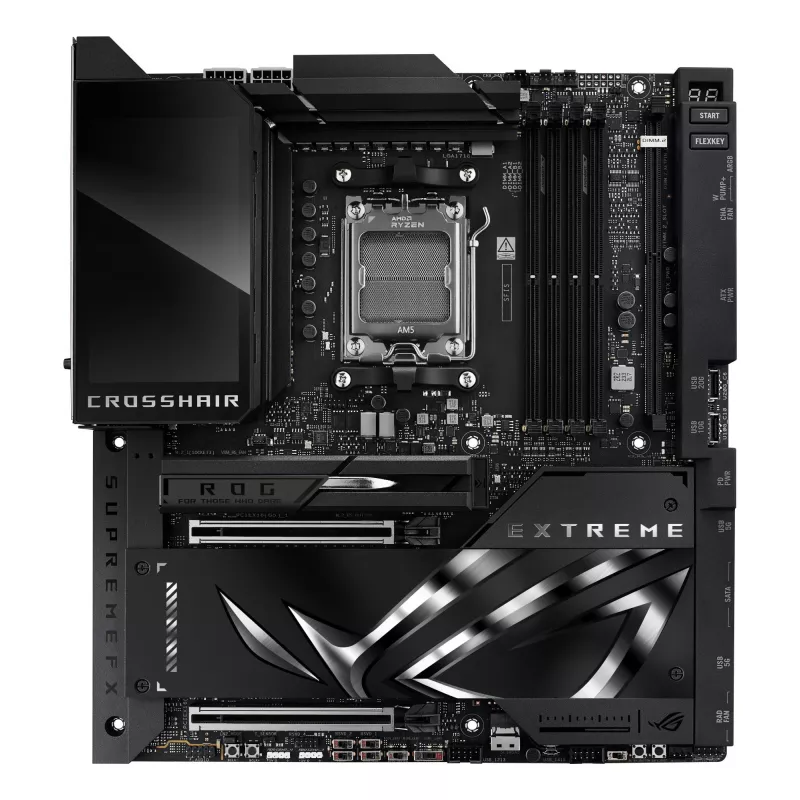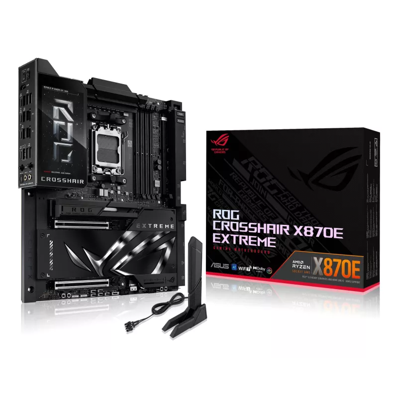 - ASUS ROG CROSSHAIR X870E EXTREME. PROCESSOR MANUFACTURER: AMD, PROCESSOR SOCKET: SOCKET AM5, COMPATIBLE PROCESSOR SERIES: AMD RYZEN 7000 SERIES, AMD RYZEN 8000 SERIES, AMD RYZEN 9000 SERIES. SUPPORTED MEMORY TYPES: DDR5-SDRAM, MAXIMUM INTERNAL MEMORY: 256