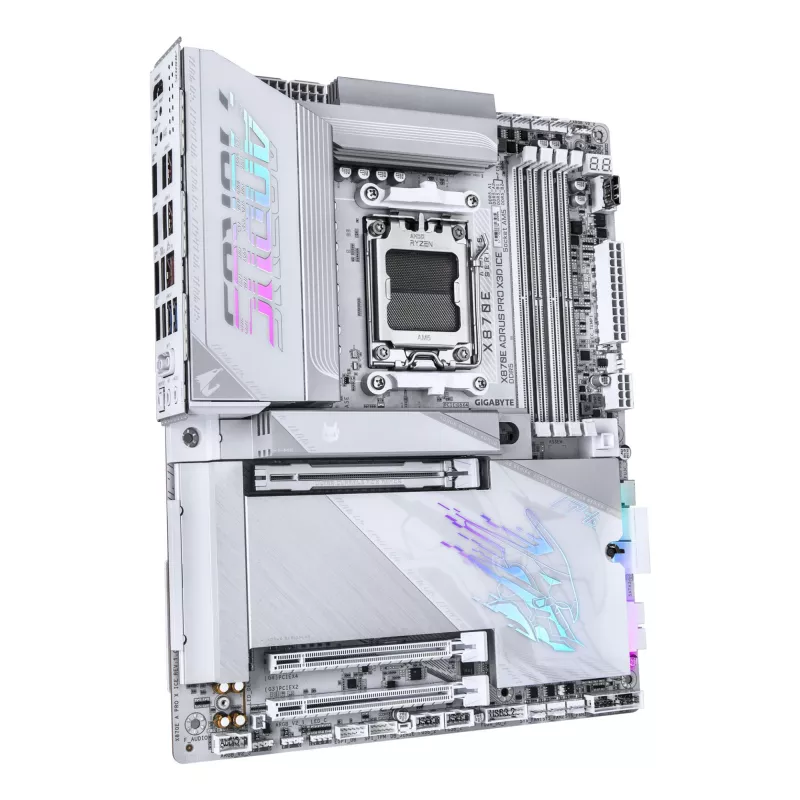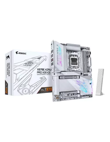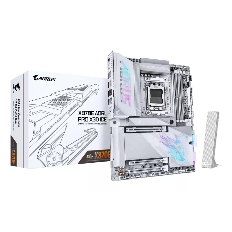 - GIGABYTE X870E AORUS PRO X3D ICE MOTHERBOARD - SUPPORTS AMD RYZEN 9000 CPUS, 18+2+2 PHASES DIGITAL VRM, UP TO 9000HZ DDR5 (OC), 2XPCIE 5.0 + 2XPCIE 4.0, WI-FI 7, 5GBE LAN, USB 4. PROCESSOR MANUFACTURER: AMD, PROCESSOR SOCKET: SOCKET AM5, COMPATIBLE PROCES