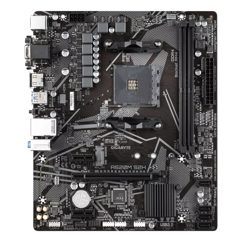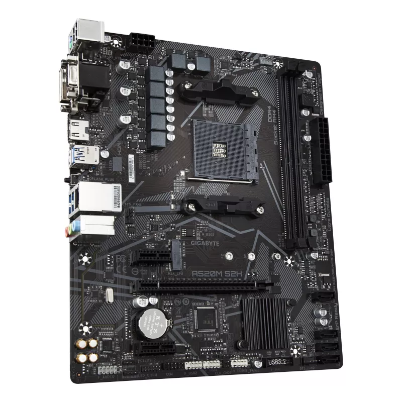 - GIGABYTE A520M S2H MOTHERBOARD - SUPPORTS AMD RYZEN 5000 SERIES AM4 CPUS, 4+3 PHASES PURE DIGITAL VRM, UP TO 5100MHZ DDR4 (OC), PCIE 3.0 X4 M.2, GBE LAN, USB 3.2 GEN 1. PROCESSOR MANUFACTURER: AMD, PROCESSOR SOCKET: SOCKET AM4, COMPATIBLE PROCESSOR SERIES