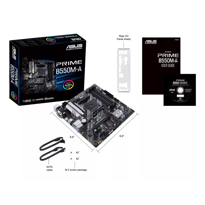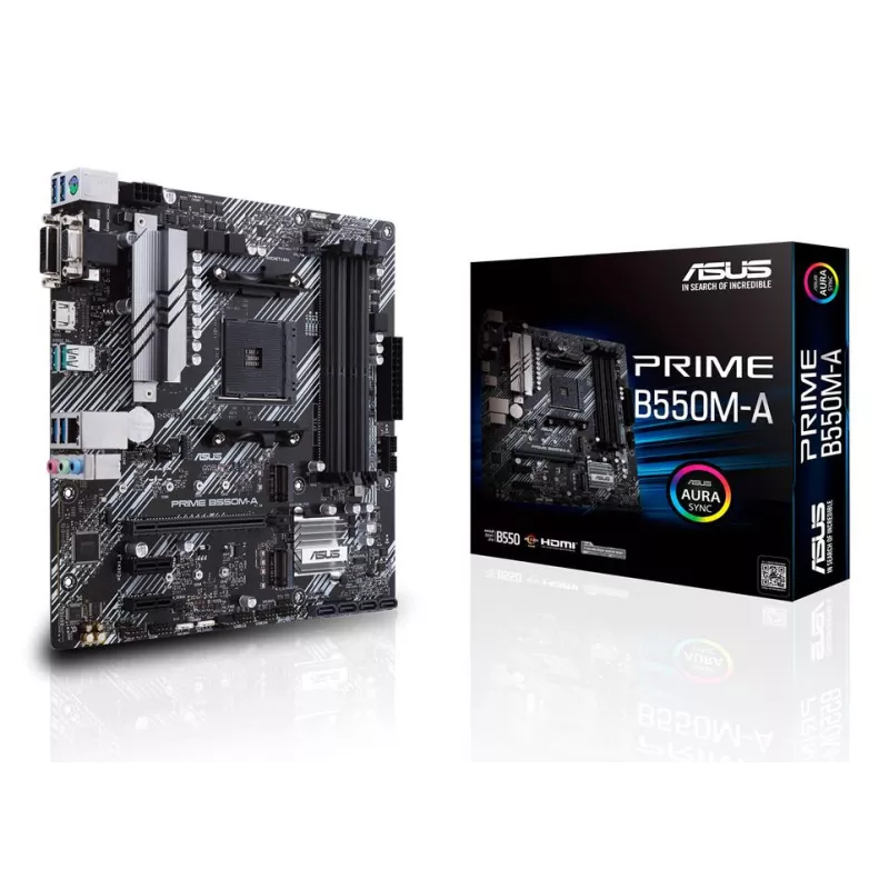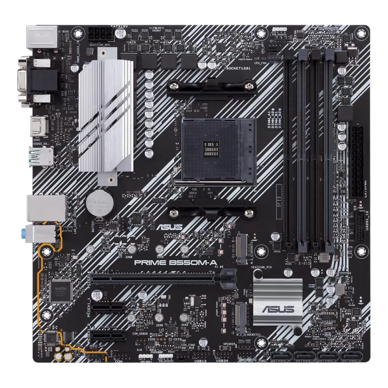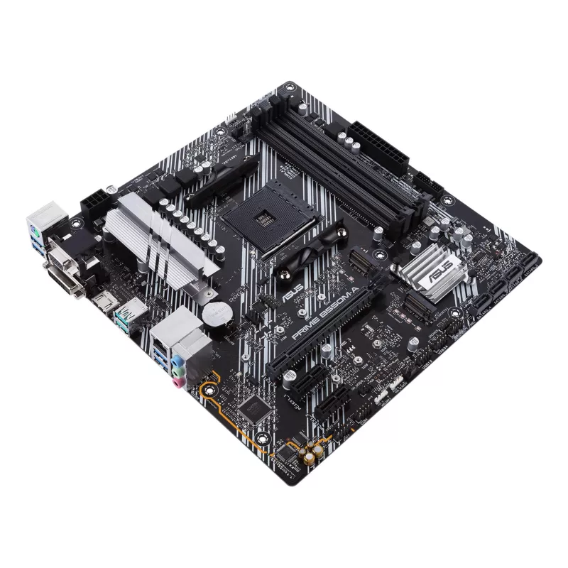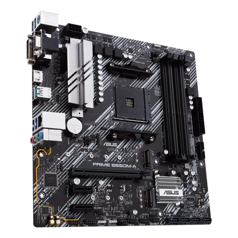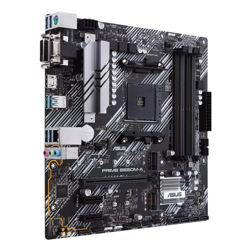 ASUS PRIME B550M-A. PROCESSOR MANUFACTURER: AMD, PROCESSOR SOCKET: SOCKET AM4, COMPATIBLE PROCESSOR SERIES: AMD RYZEN 3000 SERIES. SUPPORTED MEMORY TYPES: DDR4-SDRAM, MAXIMUM INTERNAL MEMORY: 128 GB, MEMORY SLOTS TYPE: DIMM. SUPPORTED STORAGE DRIVE INTERF