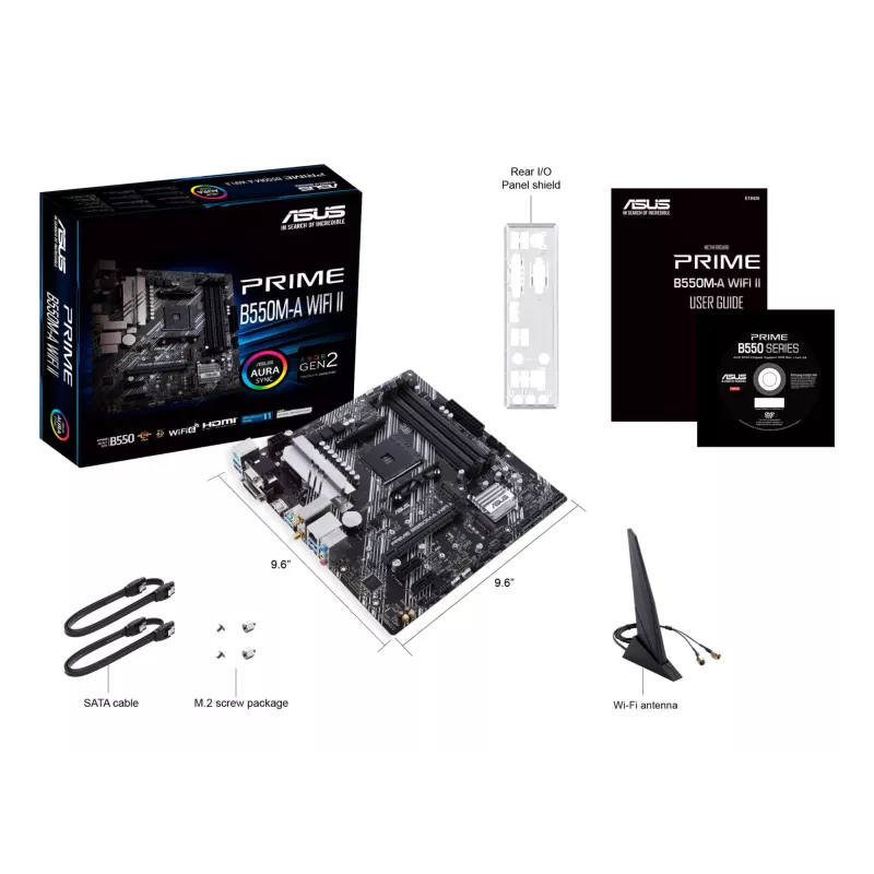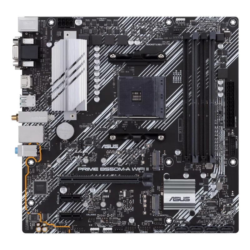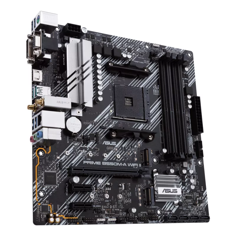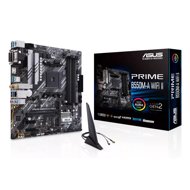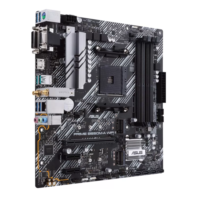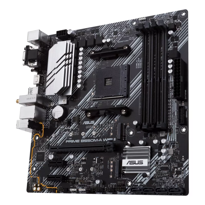 - ASUS PRIME B550M-A WIFI II. PROCESSOR MANUFACTURER: AMD, PROCESSOR SOCKET: SOCKET AM4, COMPATIBLE PROCESSOR SERIES: AMD RYZEN 3000 SERIES, AMD RYZEN 5000 SERIES. SUPPORTED MEMORY TYPES: DDR4-SDRAM, MAXIMUM INTERNAL MEMORY: 128 GB, MEMORY SLOTS TYPE: DIMM.