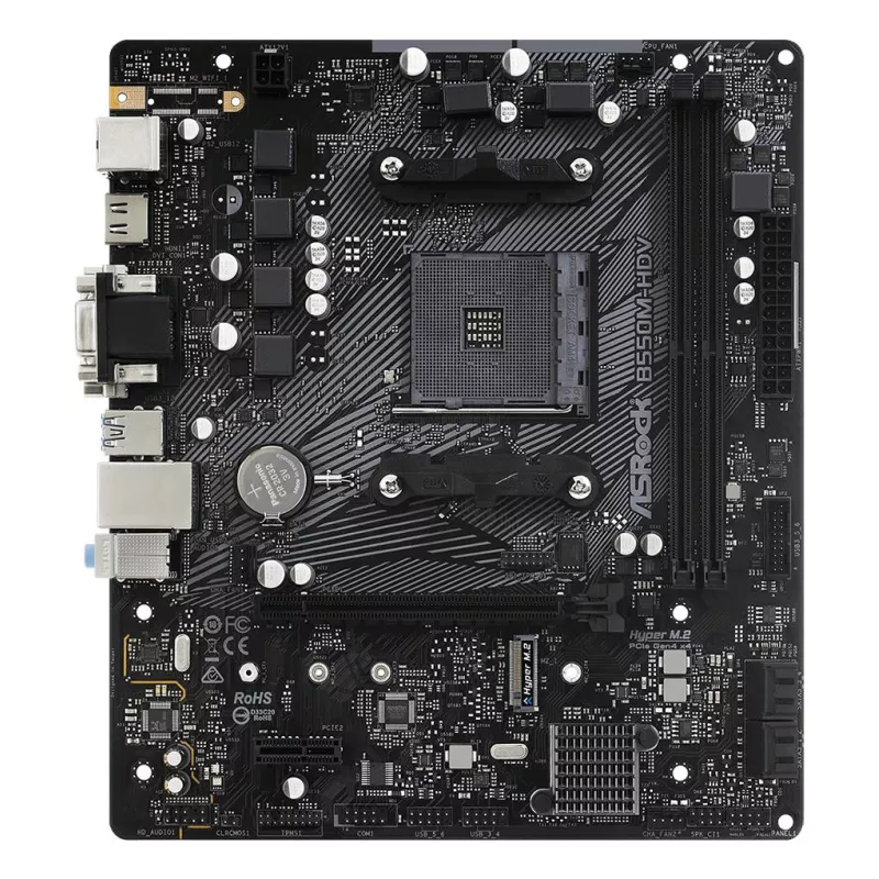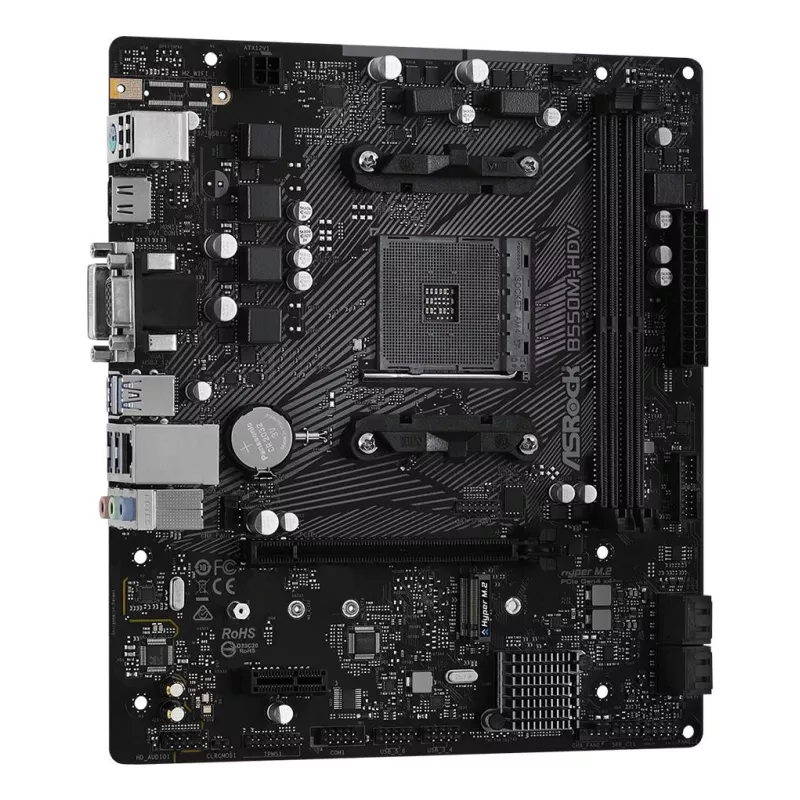 - ASROCK B550M-HDV. PROCESSOR MANUFACTURER: AMD, PROCESSOR SOCKET: SOCKET AM4, COMPATIBLE PROCESSOR SERIES: AMD RYZEN 3000 SERIES. SUPPORTED MEMORY TYPES: DDR4-SDRAM, MAXIMUM INTERNAL MEMORY: 64 GB, MEMORY SLOTS TYPE: DIMM. SUPPORTED STORAGE DRIVE INTERFACE