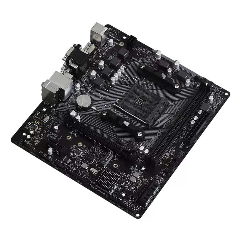 AMD B550 , micro ATX , Audio 7.1 channels , CPU AMD , Socket Socket AM4 , Series AMD Ryzen 3000 Series , Supported memory types DDR4-SDRAM , 2xNumber of memory slots , Memory slots type DIMM , Supported storage drive interfaces M.2,SATA III , On-board graphics card Yes , Graphics card Radeon Vega , 2xUSB 2.0 ports quantity , 4xUSB 3.2 Gen 1 (3.1 Gen 1) Type-A ports quantity , 1xEthernet LAN (RJ-45) ports , 1xVGA (D-Sub) ports quantity , 1xHDMI ports quantity , 1xDVI-D ports quantity , Weight 465 g
