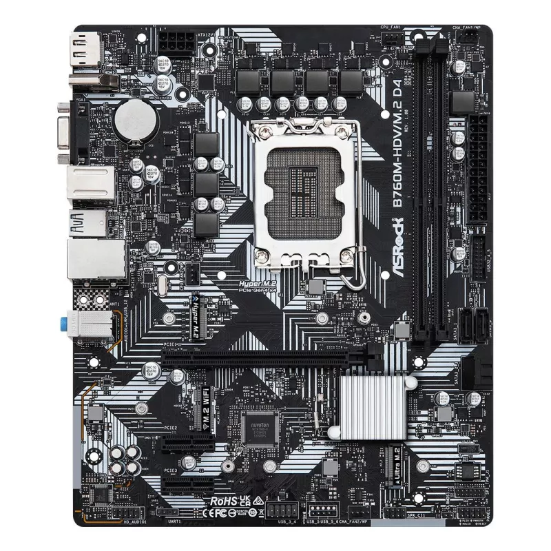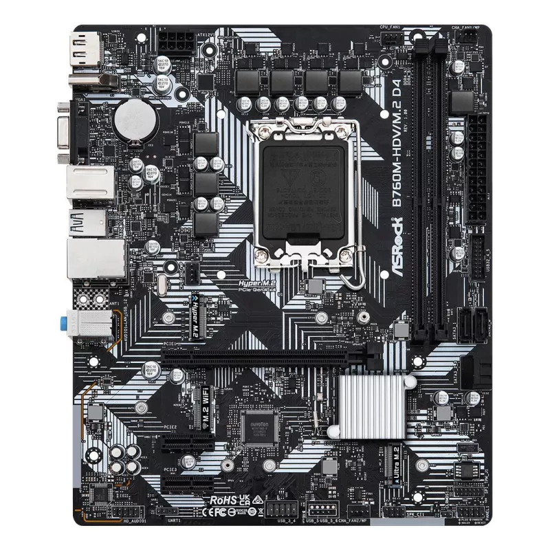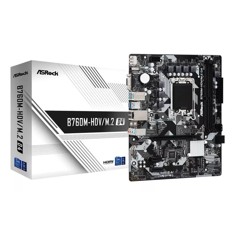 - ASROCK B760M-HDV/M.2 D4. PROCESSOR MANUFACTURER: INTEL, PROCESSOR SOCKET: LGA 1700, COMPATIBLE PROCESSOR SERIES: INTEL CORE I3, INTEL CORE I5, INTEL CORE I7, INTEL CORE I9. SUPPORTED MEMORY TYPES: DDR4-SDRAM, MAXIMUM INTERNAL MEMORY: 64 GB, MEMORY SLOTS T