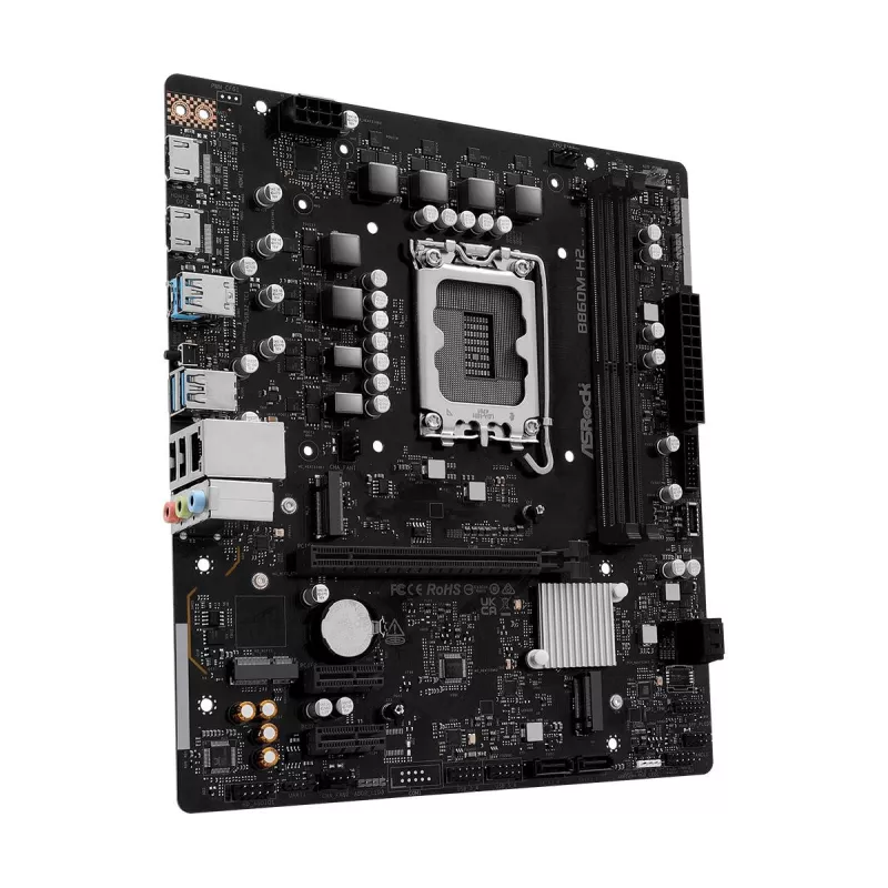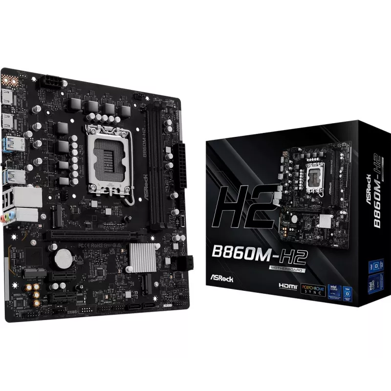 - ASROCK B860M-H2. PROCESSOR MANUFACTURER: INTEL, PROCESSOR SOCKET: LGA 1851 (SOCKET V1), COMPATIBLE PROCESSOR SERIES: INTEL CORE ULTRA (SERIES 2). SUPPORTED MEMORY TYPES: DDR5-SDRAM, MAXIMUM INTERNAL MEMORY: 128 GB, MEMORY SLOTS TYPE: DIMM. SUPPORTED STORA