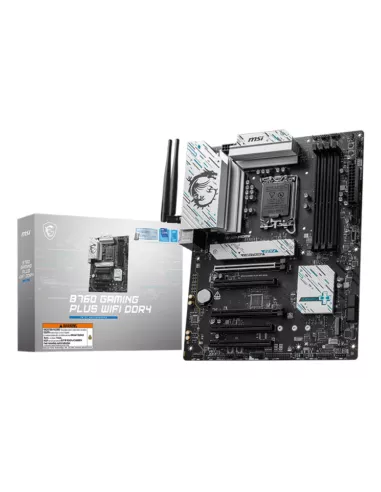 MSI B760 GAMING PLUS WIFI DDR4. PROCESSOR MANUFACTURER: INTEL, PROCESSOR SOCKET: LGA 1700, COMPATIBLE PROCESSOR SERIES: INTEL CELERON , INTEL PENTIUM GOLD. SUPPORTED MEMORY TYPES: DDR4-SDRAM, MAXIMUM INTERNAL MEMORY: 128 GB, MEMORY SLOTS TYPE: DIMM. SUPPO