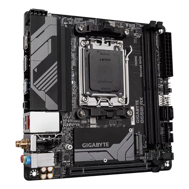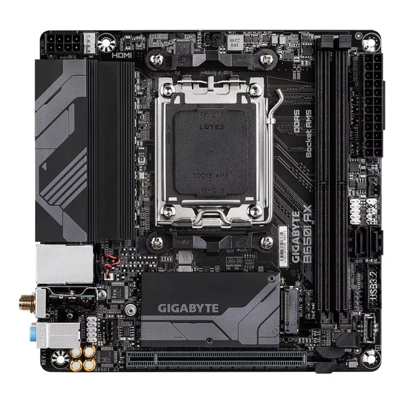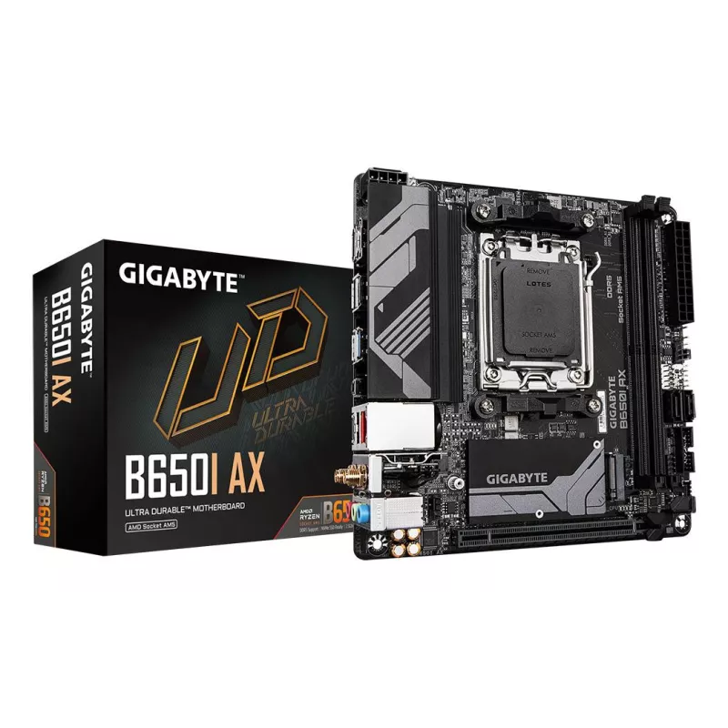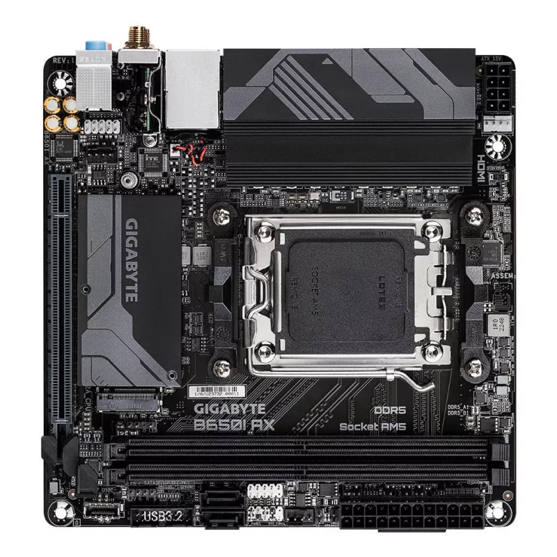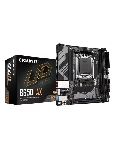 - GIGABYTE B650I AX MOTHERBOARD - AMD RYZEN 9000 SERIES CPUS, 5+2+1 PHASES VRM, UP TO 6400MHZ DDR5 (OC), 1XPCIE 4.0 M.2, 2.5GBE LAN, WIFI 6E, USB 3.2 GEN 2. PROCESSOR MANUFACTURER: AMD, PROCESSOR SOCKET: SOCKET AM5, COMPATIBLE PROCESSOR SERIES: AMD RYZEN 70