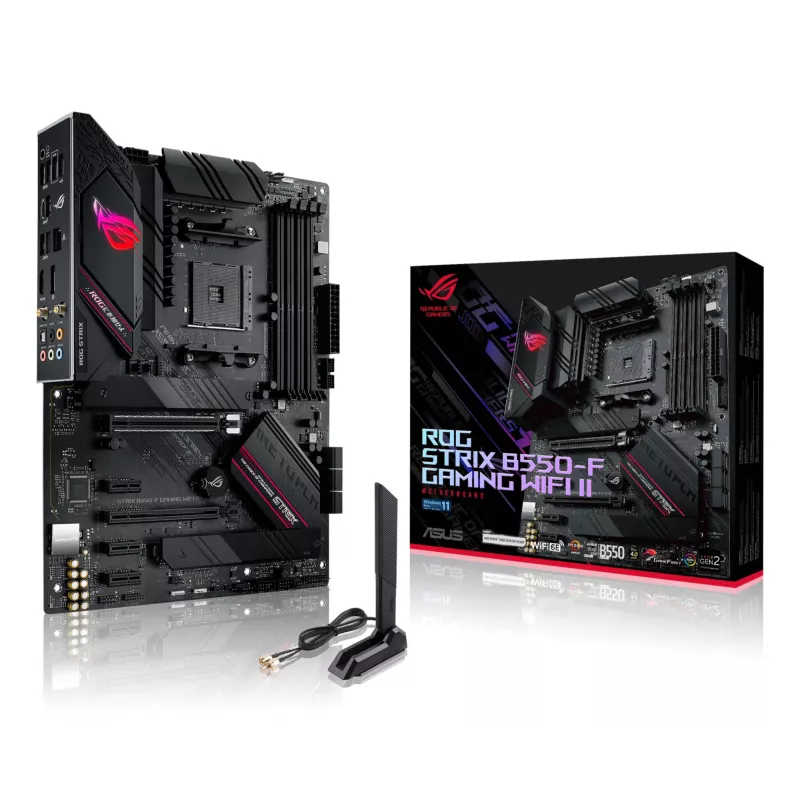 - ASUS ROG STRIX B550-F GAMING WIFI II. PROCESSOR MANUFACTURER: AMD, PROCESSOR SOCKET: SOCKET AM4, COMPATIBLE PROCESSOR SERIES: AMD RYZEN 3000 SERIES. SUPPORTED MEMORY TYPES: DDR4-SDRAM, MAXIMUM INTERNAL MEMORY: 128 GB, MEMORY SLOTS TYPE: DIMM. SUPPORTED ST
