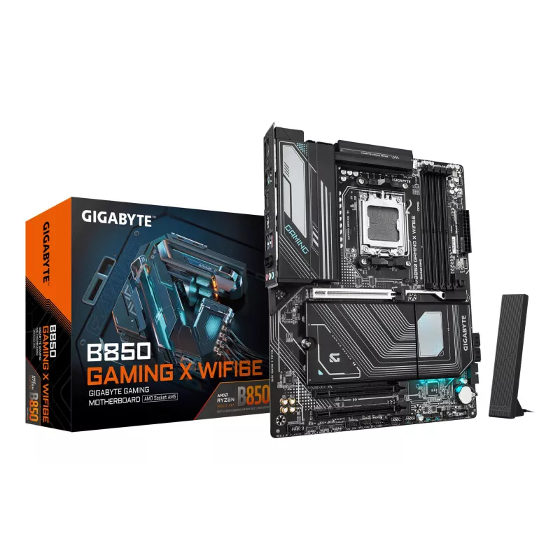- GIGABYTE B850 GAMING X WIFI6E MOTHERBOARD - AMD RYZEN 9000 SERIES CPUS, 12+2+2 PHASES DIGITAL VRM, UP TO 8200MHZ DDR5 (OC), 1XPCIE 5.0 + 2XPCIE 4.0 M.2, 2.5LAN, WIFI 6E, USB 3.2 GEN 2X2. PROCESSOR MANUFACTURER: AMD, PROCESSOR SOCKET: SOCKET AM5, COMPATIBL
