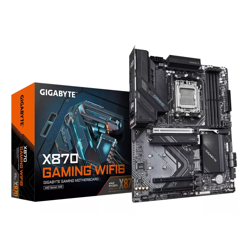 - GIGABYTE X870 GAMING WIFI6 MOTHERBOARD - SUPPORTS AMD RYZEN 9000 CPUS, 8+2+2 PHASES VRM, UP TO 8000MHZ DDR5 (OC), 1XPCIE 5.0 + 2XPCIE 4.0, WI-FI 6, 2.5GBE LAN, USB 4. PROCESSOR MANUFACTURER: AMD, PROCESSOR SOCKET: SOCKET AM5, COMPATIBLE PROCESSOR SERIES: