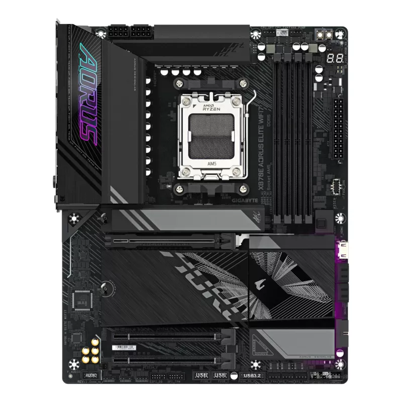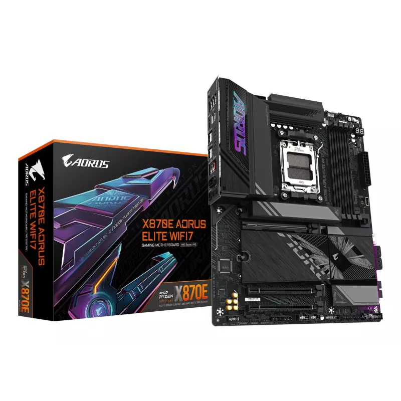 GIGABYTE X870E AORUS ELITE WIFI7 MOTHERBOARD - SUPPORTS AMD RYZEN 9000 CPUS, 16+2+2 PHASES DIGITAL VRM, UP TO 8000HZ DDR5 (OC), 3XPCIE 5.0 + 1XPCIE 4.0, WI-FI 7, 2.5GBE LAN, USB 4. PROCESSOR MANUFACTURER: AMD, PROCESSOR SOCKET: SOCKET AM5, COMPATIBLE PROC