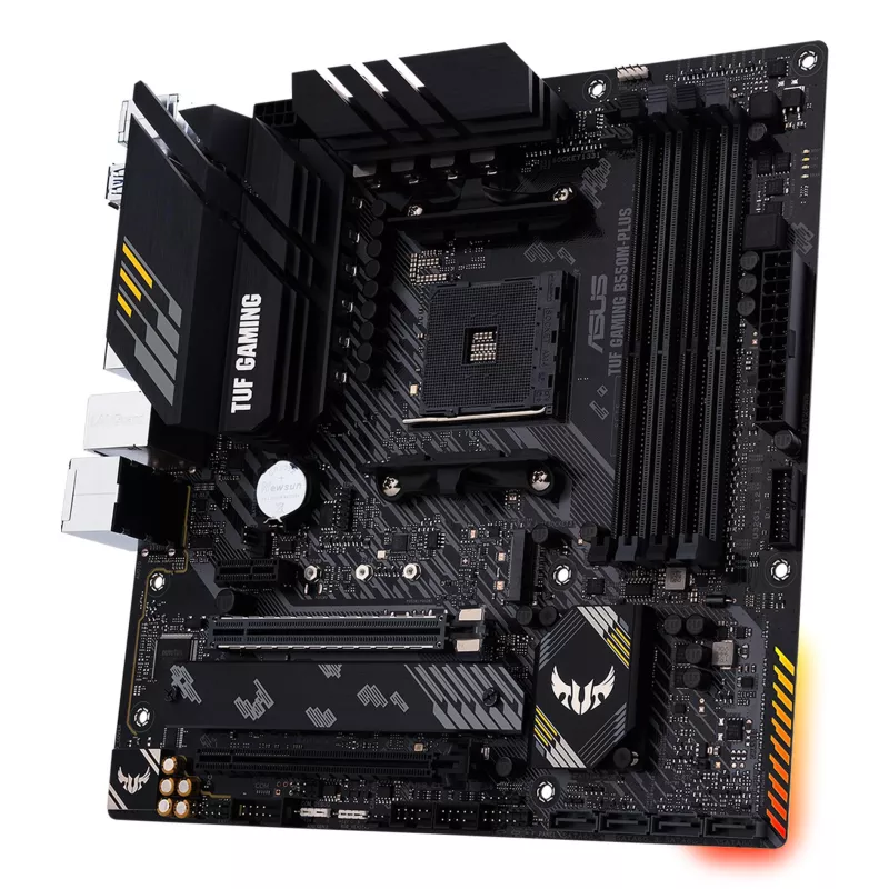 - ASUS TUF GAMING B550M PLUS. PROCESSOR MANUFACTURER: AMD, PROCESSOR SOCKET: SOCKET AM4, COMPATIBLE PROCESSOR SERIES: AMD RYZEN 3000 SERIES. SUPPORTED MEMORY TYPES: DDR4-SDRAM, MAXIMUM INTERNAL MEMORY: 128 GB, MEMORY SLOTS TYPE: DIMM. SUPPORTED STORAGE DRIV