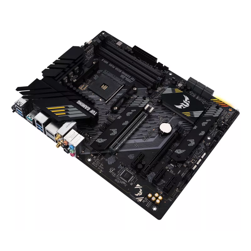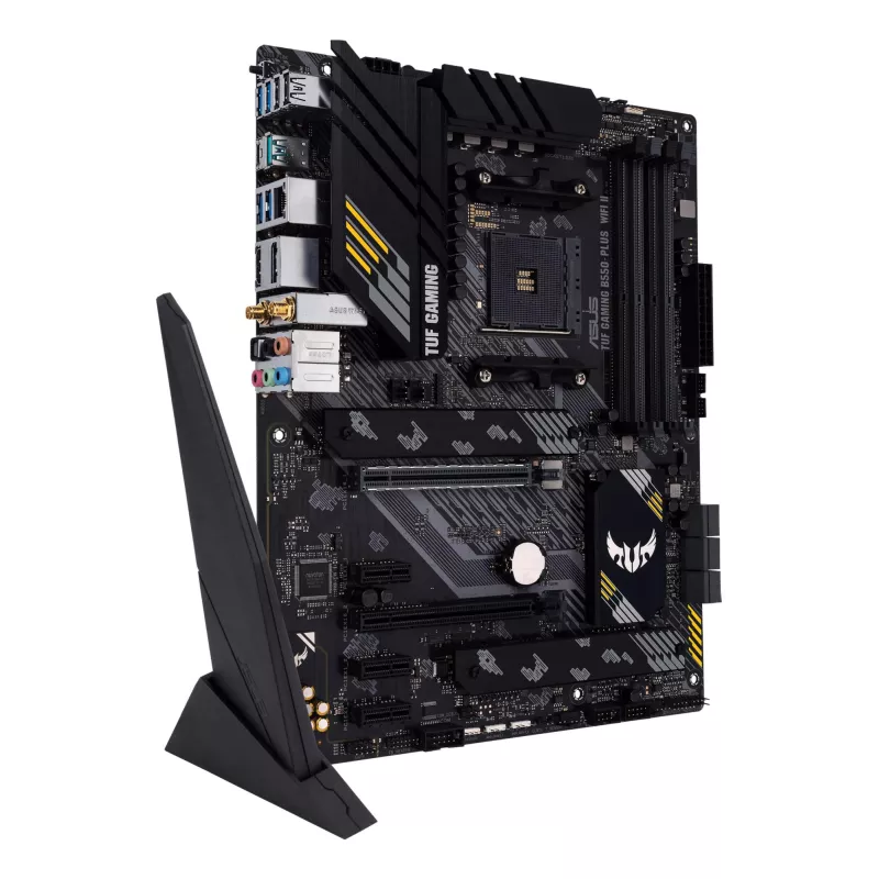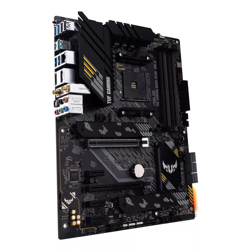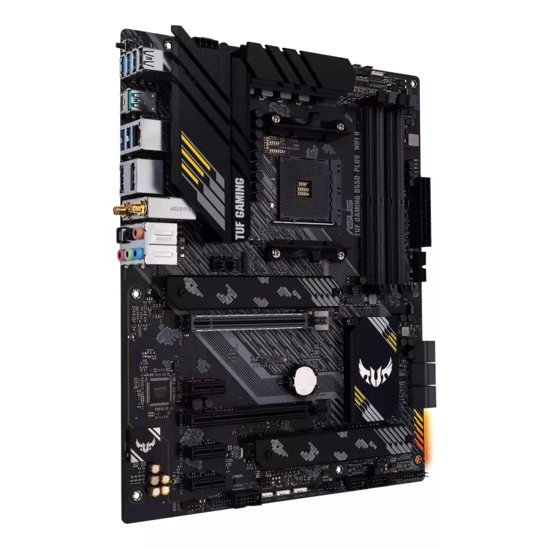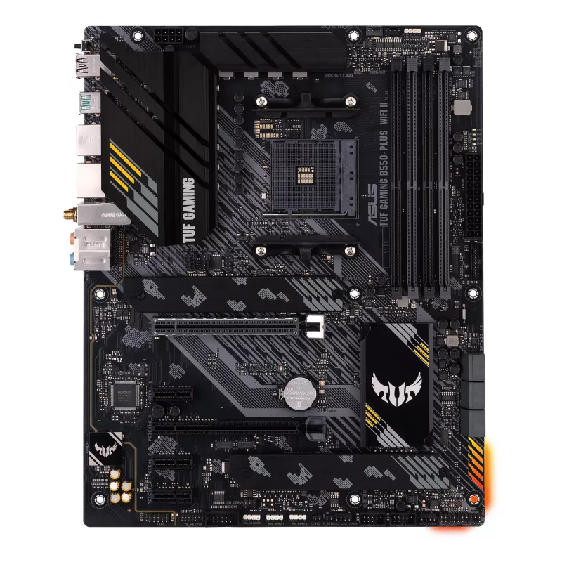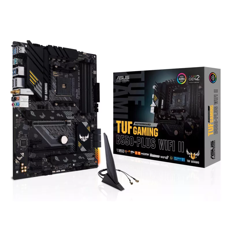- ASUS TUF GAMING B550-PLUS WIFI II. PROCESSOR MANUFACTURER: AMD, PROCESSOR SOCKET: SOCKET AM4, COMPATIBLE PROCESSOR SERIES: AMD RYZEN 3000 SERIES. SUPPORTED MEMORY TYPES: DDR4-SDRAM, MAXIMUM INTERNAL MEMORY: 128 GB, MEMORY SLOTS TYPE: DIMM. SUPPORTED STORA