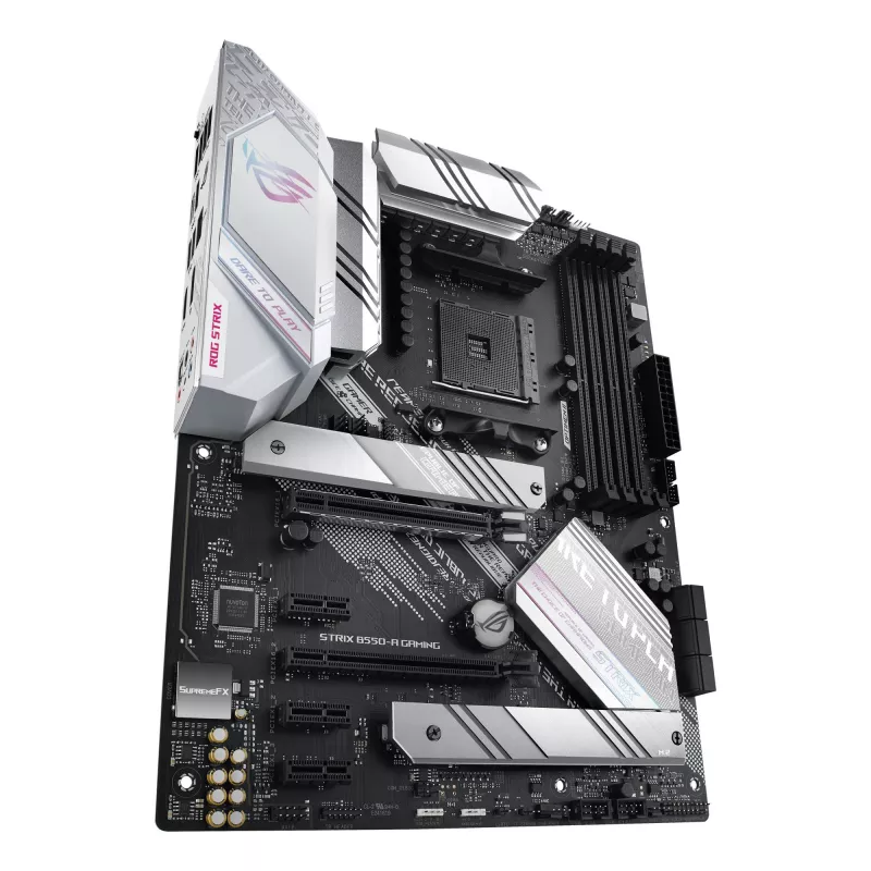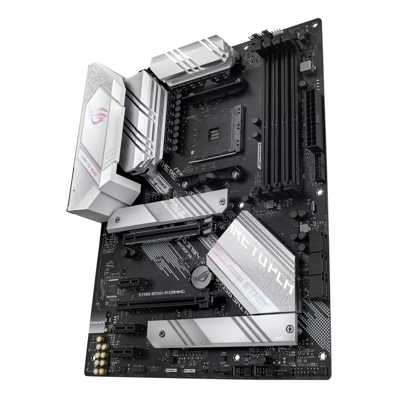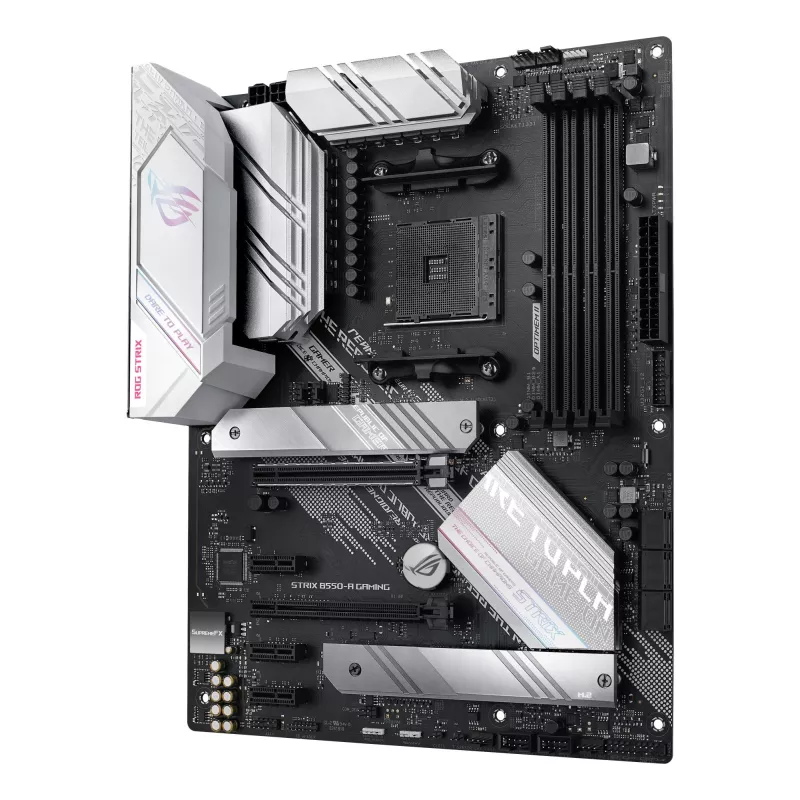 - ASUS ROG STRIX B550-A GAMING. PROCESSOR MANUFACTURER: AMD, PROCESSOR SOCKET: SOCKET AM4, COMPATIBLE PROCESSOR SERIES: AMD RYZEN 3. SUPPORTED MEMORY TYPES: DDR4-SDRAM, MAXIMUM INTERNAL MEMORY: 128 GB, MEMORY SLOTS TYPE: DIMM. SUPPORTED STORAGE DRIVE INTERF