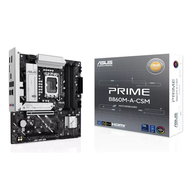 - ASUS PRIME B860M-A-CSM. PROCESSOR MANUFACTURER: INTEL, PROCESSOR SOCKET: LGA 1851 (SOCKET V1), COMPATIBLE PROCESSOR SERIES: INTEL CORE ULTRA (SERIES 2). SUPPORTED MEMORY TYPES: DDR5-SDRAM, MAXIMUM INTERNAL MEMORY: 256 GB, MEMORY SLOTS TYPE: DIMM. SUPPORTE