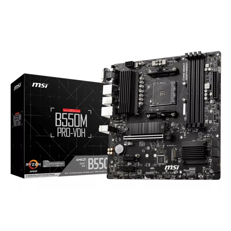 - MSI B550M PRO-VDH. PROCESSOR MANUFACTURER: AMD, PROCESSOR SOCKET: SOCKET AM4, COMPATIBLE PROCESSOR SERIES: AMD RYZEN 3000 SERIES. SUPPORTED MEMORY TYPES: DDR4-SDRAM, MAXIMUM INTERNAL MEMORY: 128 GB, MEMORY SLOTS TYPE: DIMM. SUPPORTED STORAGE DRIVE INTERFA