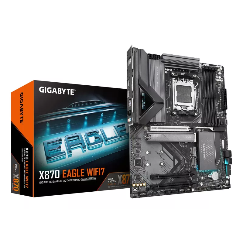 - GIGABYTE X870 EAGLE WIFI7 MOTHERBOARD - SUPPORTS AMD RYZEN 9000 CPUS, 14+2+2 PHASES VRM, UP TO 8000MHZ DDR5 (OC), 1XPCIE 5.0 + 2XPCIE 4.0, WI-FI 7, 2.5GBE LAN, USB 4. PROCESSOR MANUFACTURER: AMD, PROCESSOR SOCKET: SOCKET AM5, COMPATIBLE PROCESSOR SERIES: