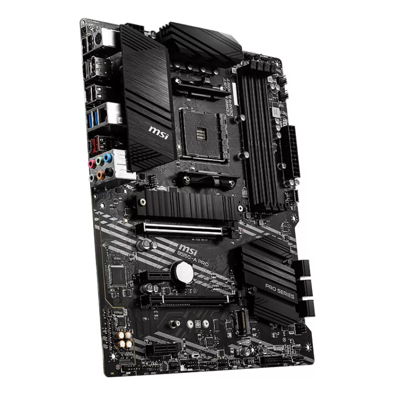 - MSI B550-A PRO. PROCESSOR MANUFACTURER: AMD, PROCESSOR SOCKET: SOCKET AM4, COMPATIBLE PROCESSOR SERIES: AMD RYZEN 3000 SERIES. SUPPORTED MEMORY TYPES: DDR4-SDRAM, MAXIMUM INTERNAL MEMORY: 128 GB, MEMORY SLOTS TYPE: DIMM. SUPPORTED STORAGE DRIVE INTERFACES
