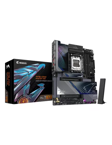 - GIGABYTE X870E AORUS MASTER X3D MOTHERBOARD - SUPPORTS AMD RYZEN 9000 CPUS, 18+2+2 PHASES DIGITAL VRM, UP TO 9000HZ DDR5 (OC), 2XPCIE 5.0 + 3XPCIE 4.0, WI-FI 7, 10GBE LAN, USB 4. PROCESSOR MANUFACTURER: AMD, PROCESSOR SOCKET: SOCKET AM5, COMPATIBLE PROCES