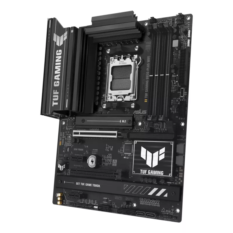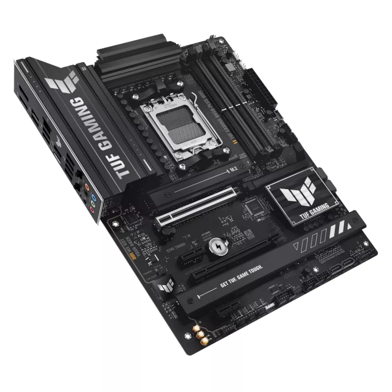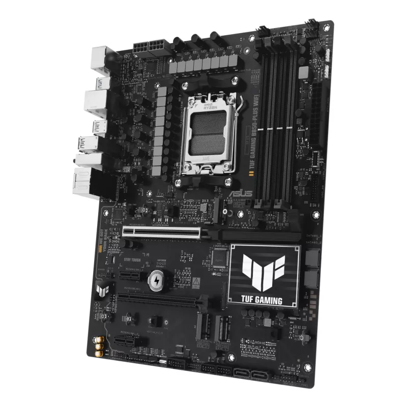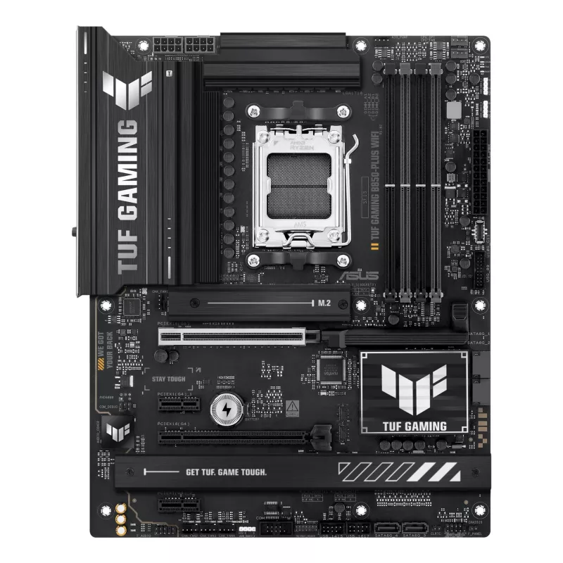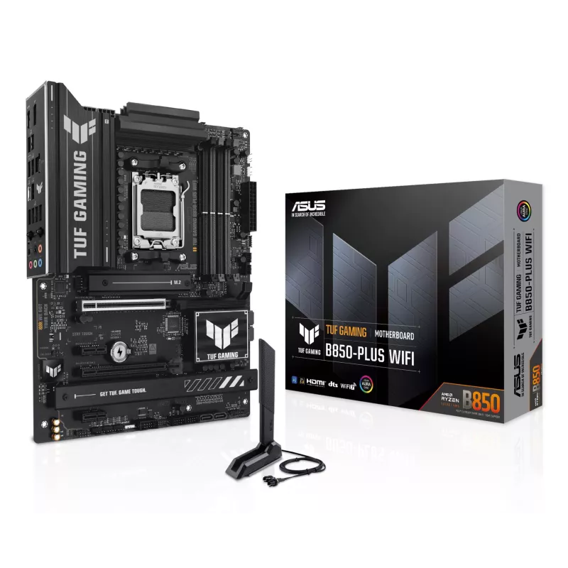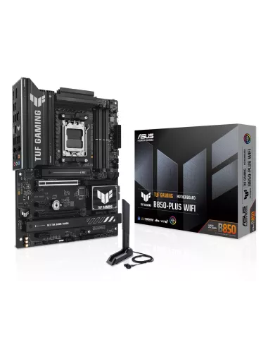ASUS TUF GAMING B850-PLUS WIFI. PROCESSOR MANUFACTURER: AMD, PROCESSOR SOCKET: SOCKET AM5, COMPATIBLE PROCESSOR SERIES: AMD RYZEN 7000 SERIES, AMD RYZEN 8000 SERIES, AMD RYZEN 9000 SERIES. SUPPORTED MEMORY TYPES: DDR5-SDRAM, MAXIMUM INTERNAL MEMORY: 192 G