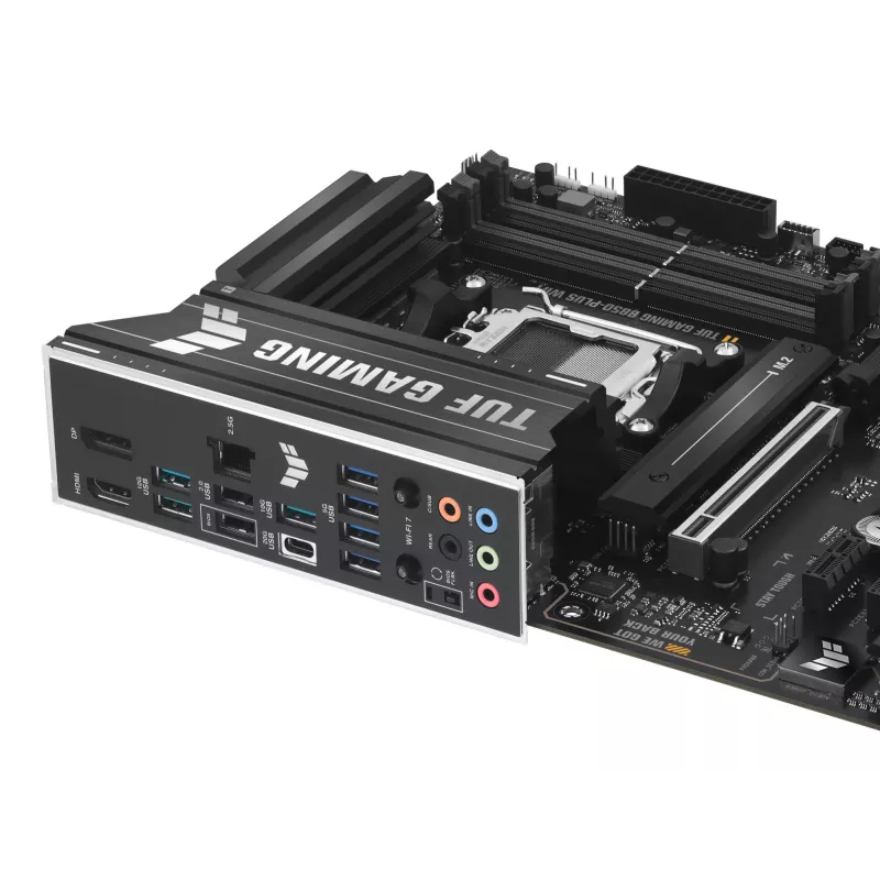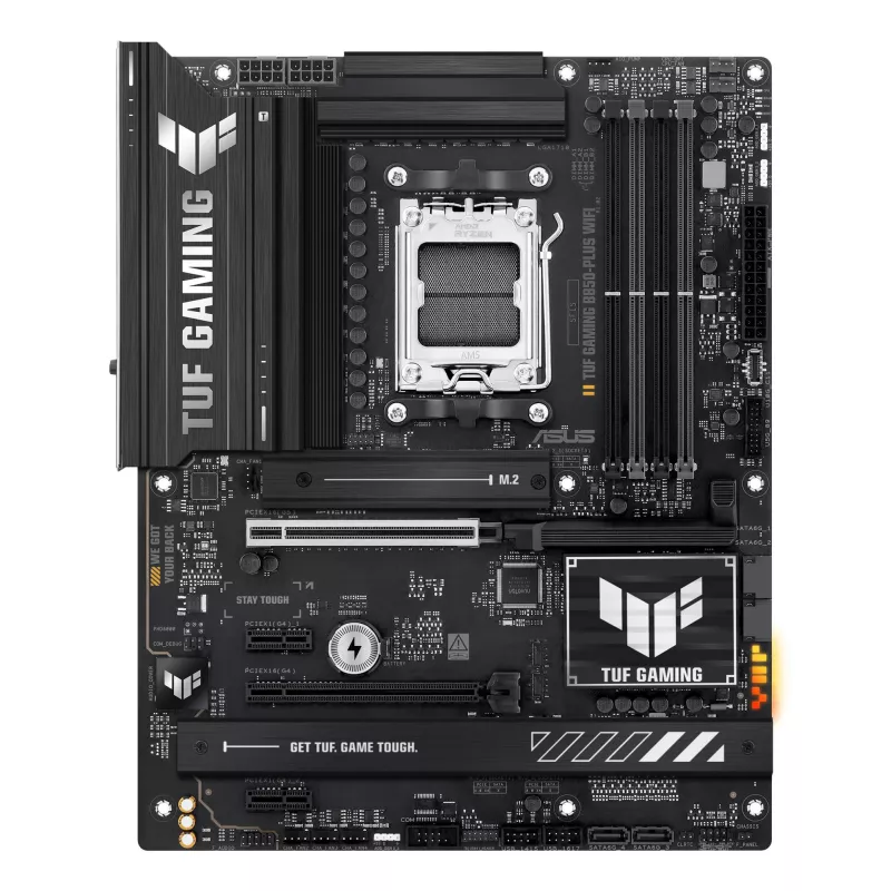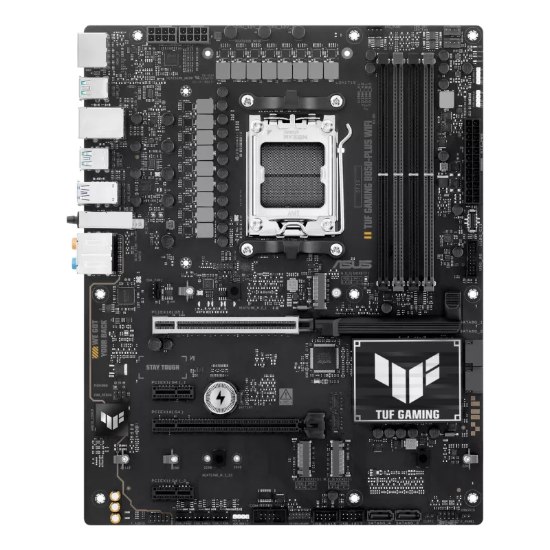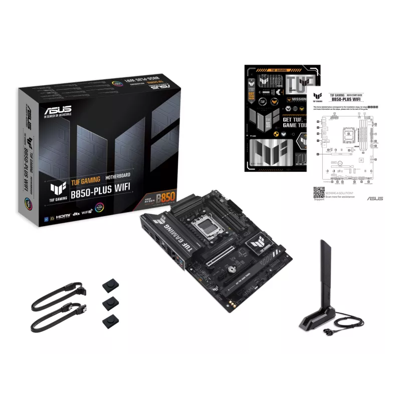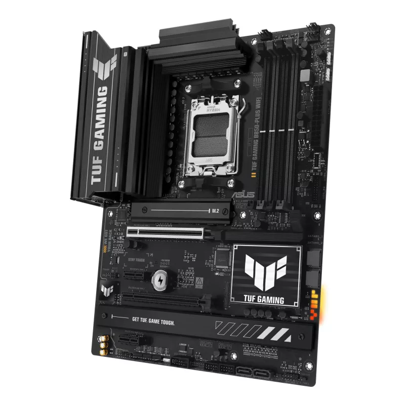 ASUS TUF GAMING B850-PLUS WIFI. PROCESSOR MANUFACTURER: AMD, PROCESSOR SOCKET: SOCKET AM5, COMPATIBLE PROCESSOR SERIES: AMD RYZEN 7000 SERIES, AMD RYZEN 8000 SERIES, AMD RYZEN 9000 SERIES. SUPPORTED MEMORY TYPES: DDR5-SDRAM, MAXIMUM INTERNAL MEMORY: 192 G