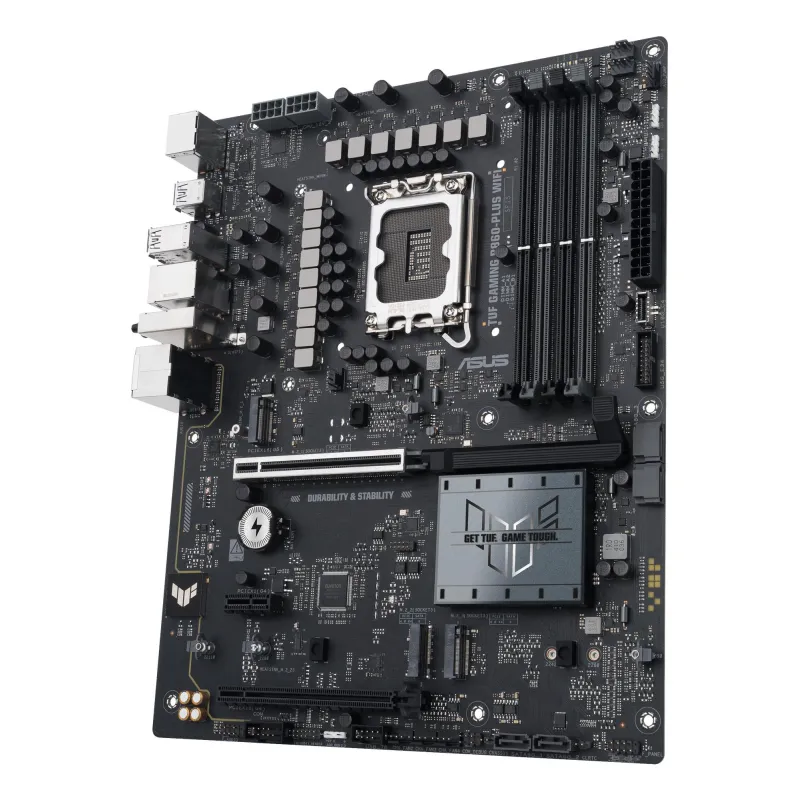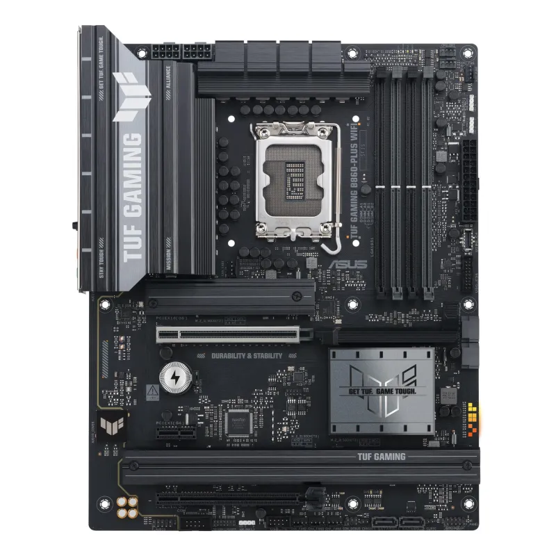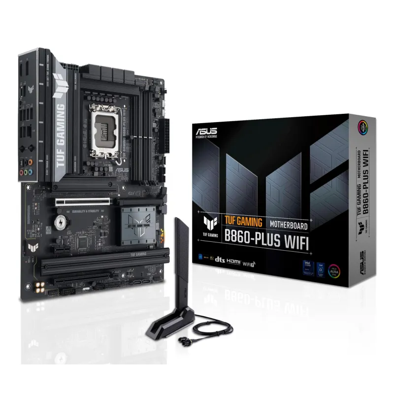 - ASUS TUF GAMING B860-PLUS WIFI. PROCESSOR MANUFACTURER: INTEL, PROCESSOR SOCKET: LGA 1851 (SOCKET V1), COMPATIBLE PROCESSOR SERIES: INTEL CORE ULTRA (SERIES 2). SUPPORTED MEMORY TYPES: DDR5-SDRAM, MAXIMUM INTERNAL MEMORY: 256 GB, MEMORY SLOTS TYPE: DIMM.