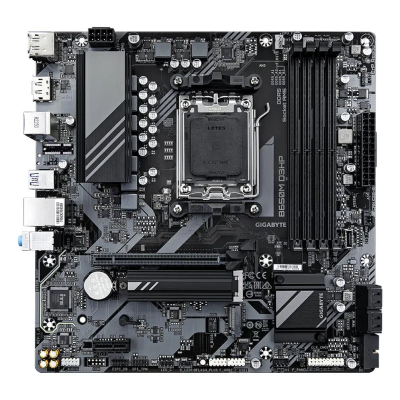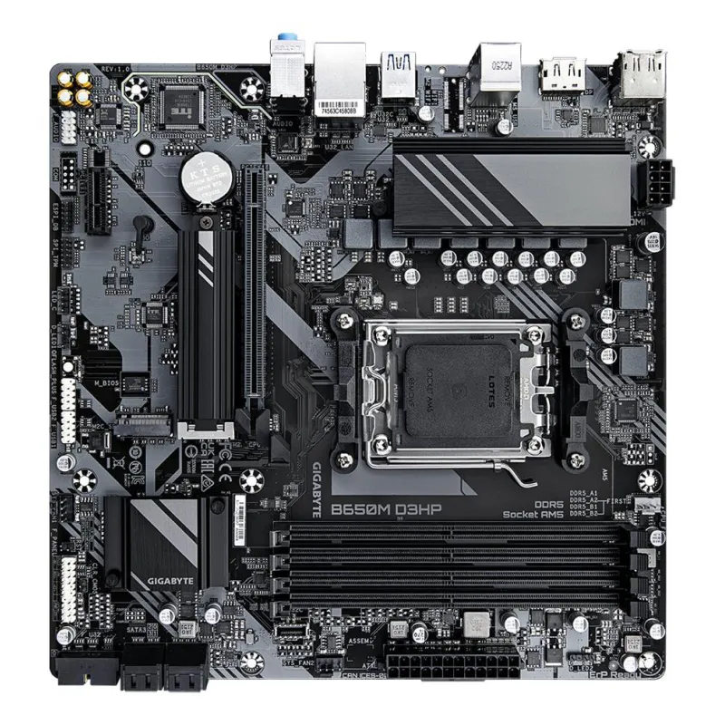 - GIGABYTE B650M D3HP MOTHERBOARD - AMD RYZEN 9000 SERIES CPUS, 5+2+2 PHASES VRM, UP TO 7600MHZ DDR5 (OC), 2XPCIE 4.0 M.2, 2.5GBE LAN, USB 3.2 GEN 1. PROCESSOR MANUFACTURER: AMD, PROCESSOR SOCKET: SOCKET AM5, COMPATIBLE PROCESSOR SERIES: AMD RYZEN 7000 SERI