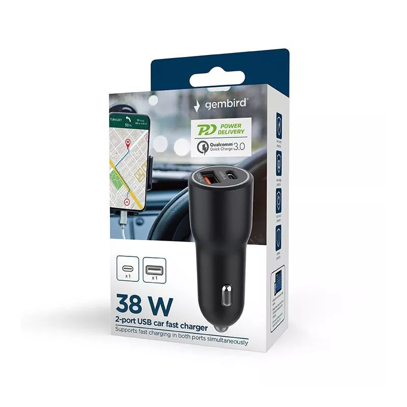 MOBILE CHARGER CAR USB 2PORT/TA-UC-AC2PDQC38-CAR-01 GEMBIRD