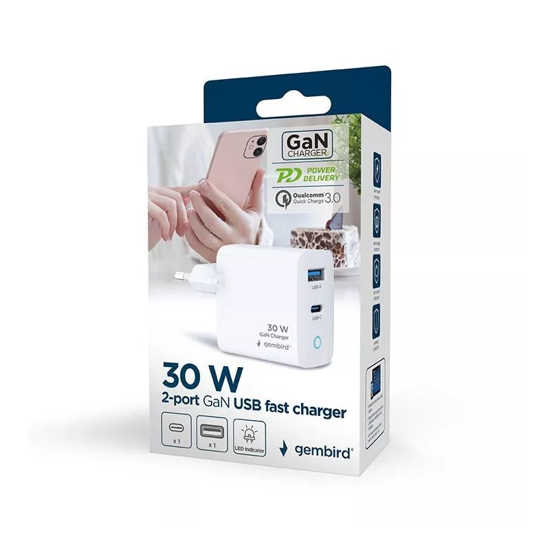 CHARGER USB 30W 2PORT/TA-UC-PDQC30L-W-01 GEMBIRD